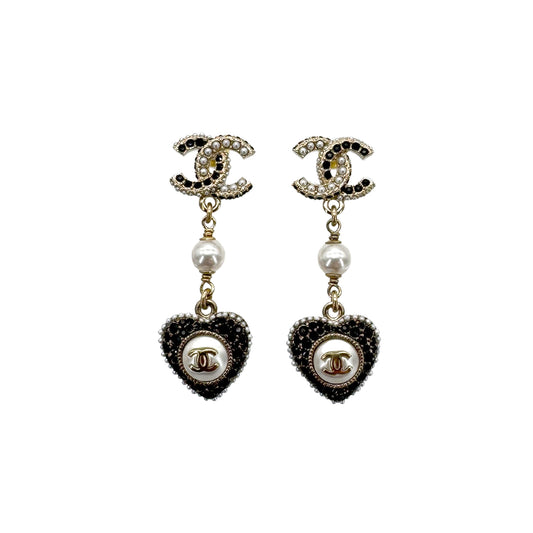 CHANEL EARRINGS COCOMARK HEART FAUX PEARL RHINESTONE ACCESSORY C22B 90273920