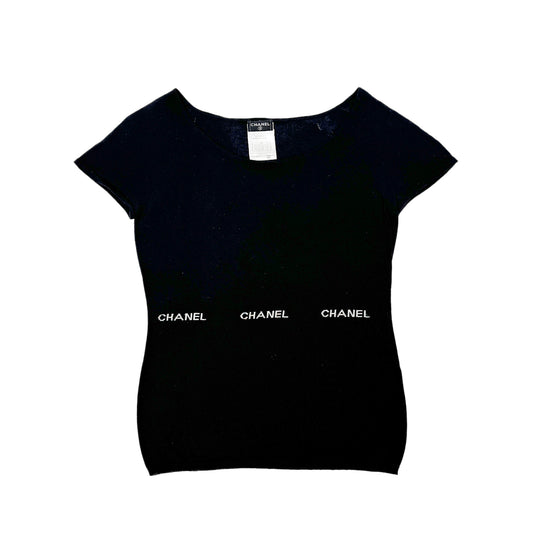 CHANEL LOGO TOPS BLACK COTTON 38 01P RTW 90284585