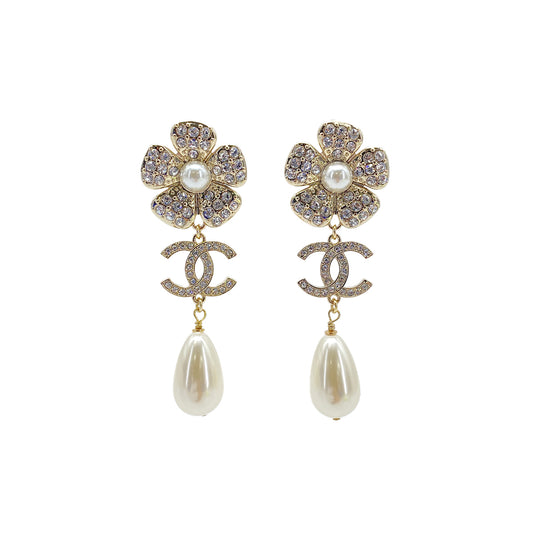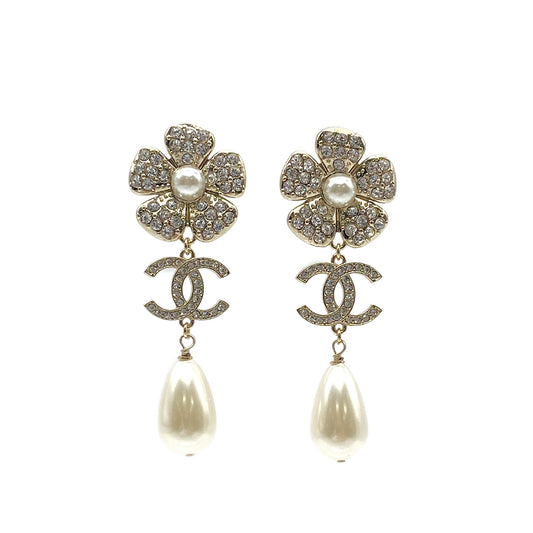 CHANEL EARRINGS COCOMARK SWING FAUX PEARL RHINESTONE ACCESSORY B23C 90266449