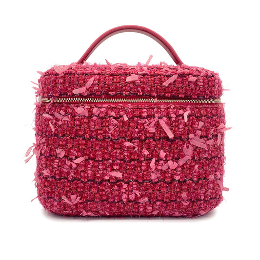 CHANEL VANITY HAND BAG RED TWEED LEATHER 90265917