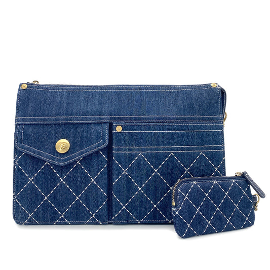 CHANEL MATELASSE CLUTCH BAG BLUE DENIM 90266140