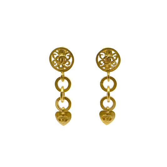 CHANEL VINTAGE EARRINGS COCOMARK HEART SWING ACCESSORY 95P 90274888