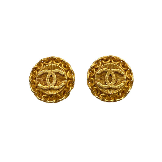 CHANEL VINTAGE COCOMARK EARRINGS GOLD ROUND ACCESSORY 90259726