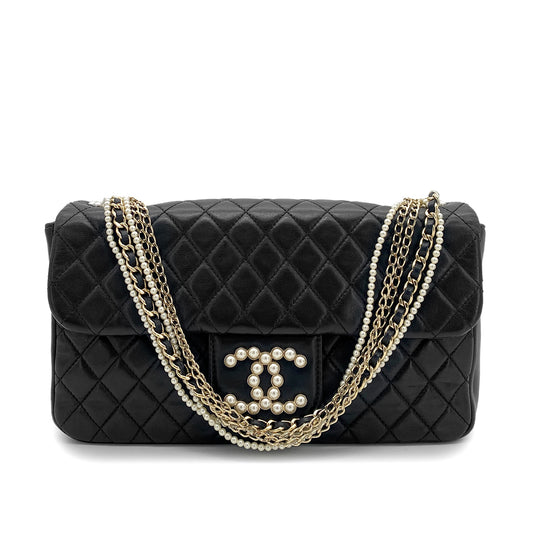 CHANEL WESTMINSTER CHAIN SHOULDER BAG FAUX PEARL BLACK LAMB SKIN 90261575