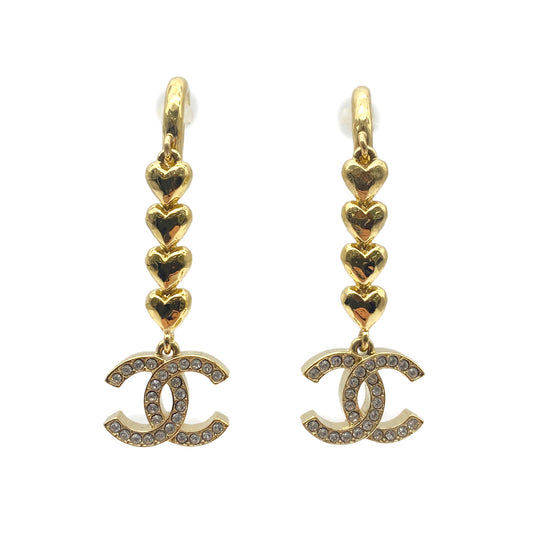 CHANEL EARRINGS COCOMARK HEART RHINESTONE ACCESSORY B23P 90262422