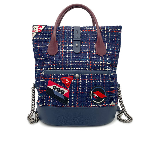 CHANEL AIRLINE CHAIN TOTE BACKPACK NAVY RED TWEED LEATHER 90264750