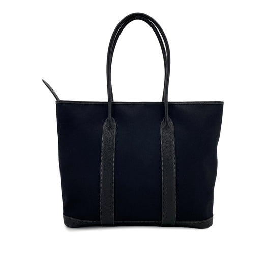 HERMES GARDEN ZIP MM BLACK TOILE OFFICIER LEATHER TOTE BAG □M 90247940