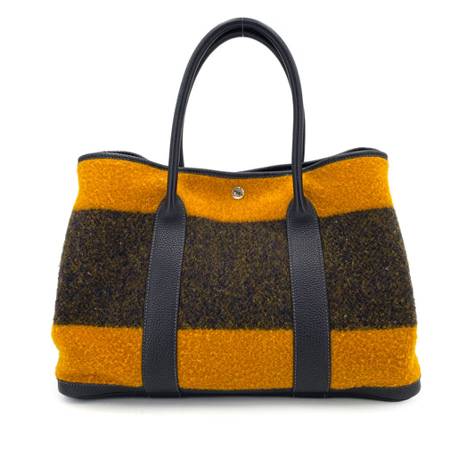 HERMES GARDEN PARTY PM ROCABAR NAVY ORANGE WOOL TOTE BAG 90249023
