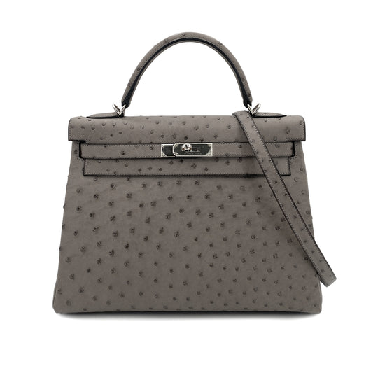 HERMES KELLY 32 RETOURNE GRAY TYPE OSTRICH HAND SHOULDER BAG □M 90249810
