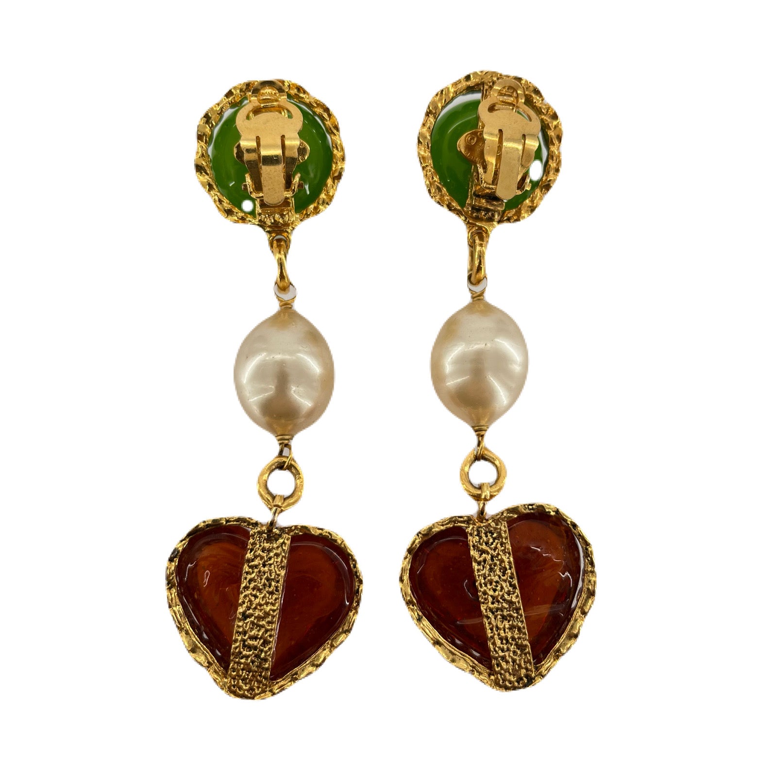 CHANEL VINTAGE EARRINGS COLORSTONE FAKEPEARL HEART ACCESSORY 2/8 90215542