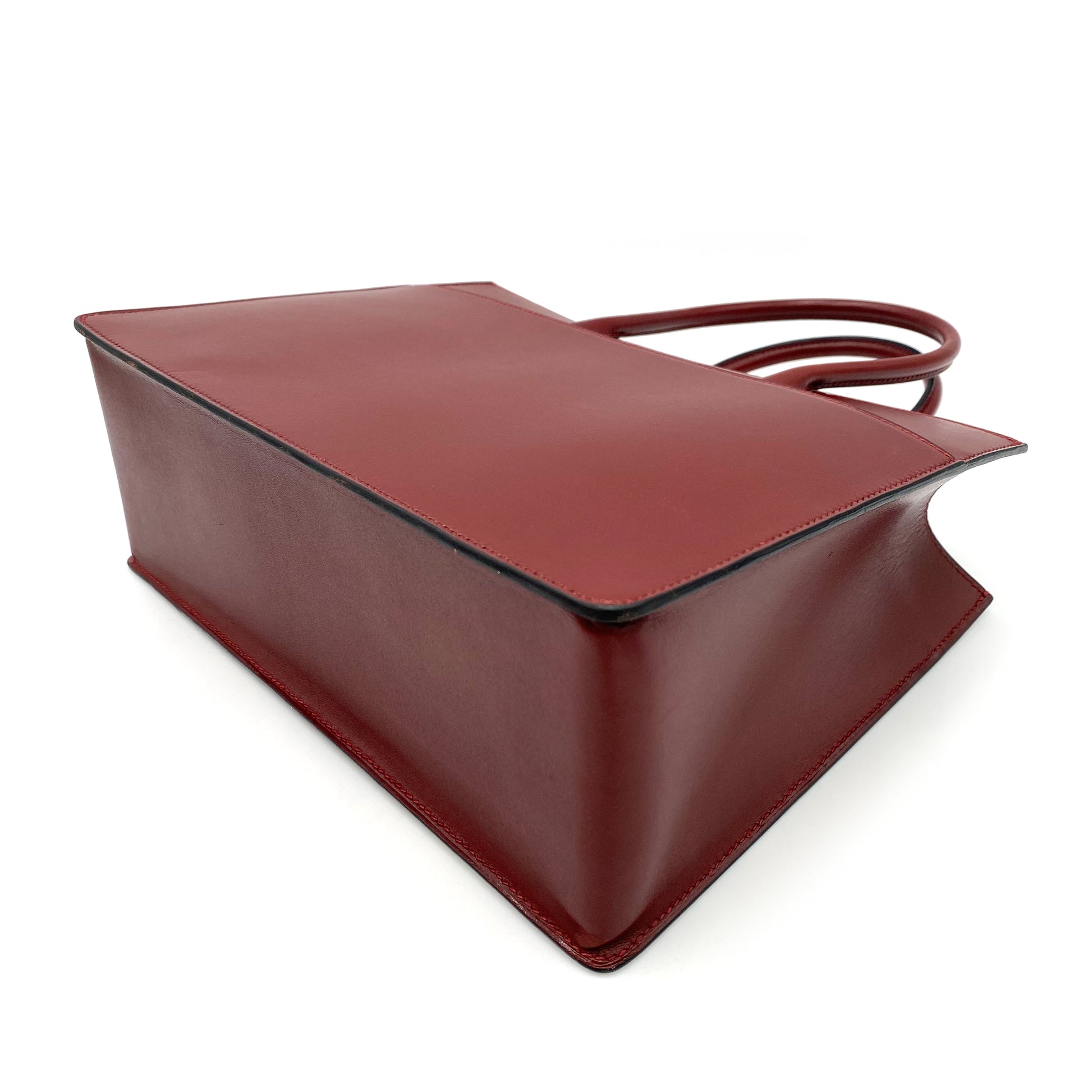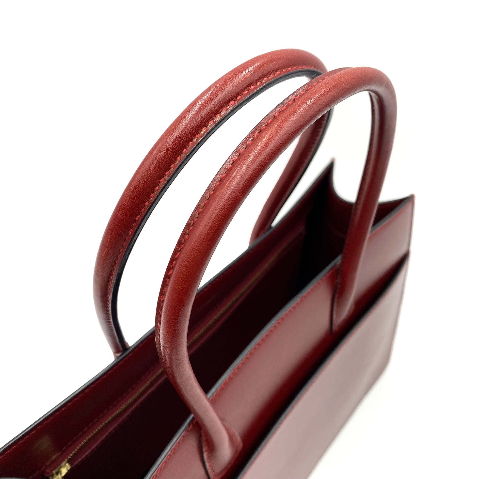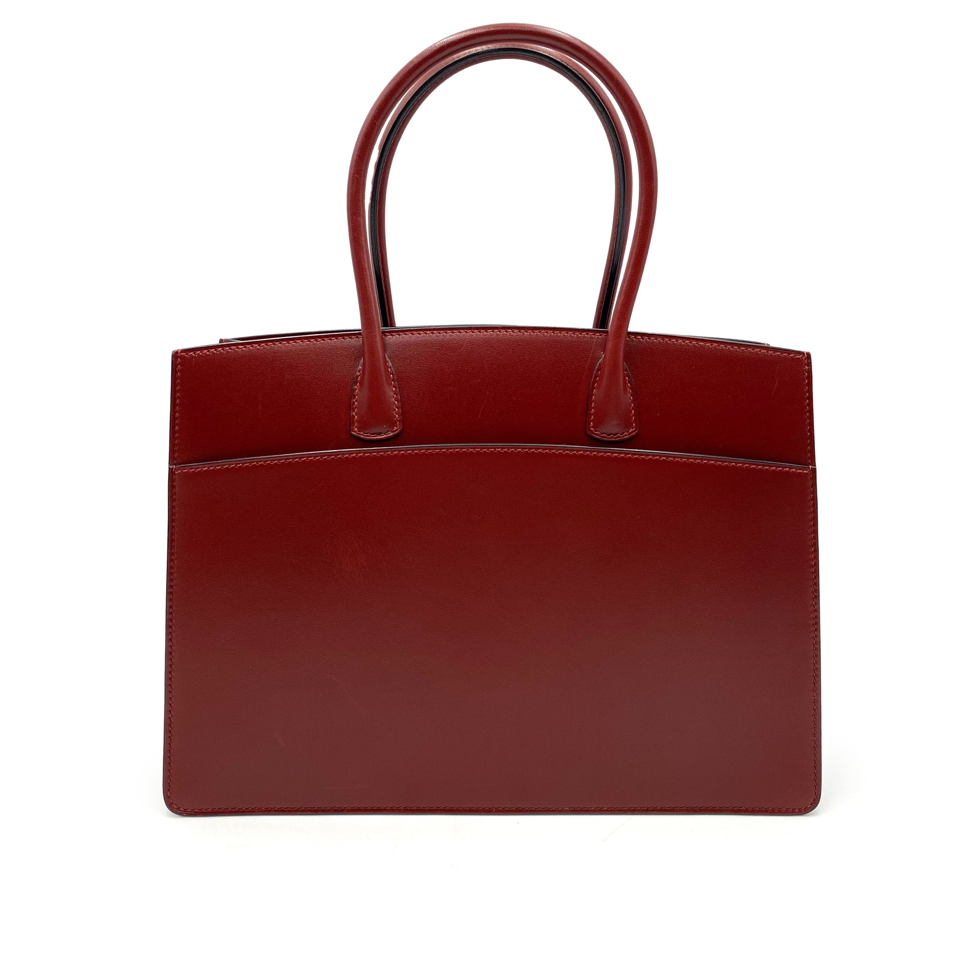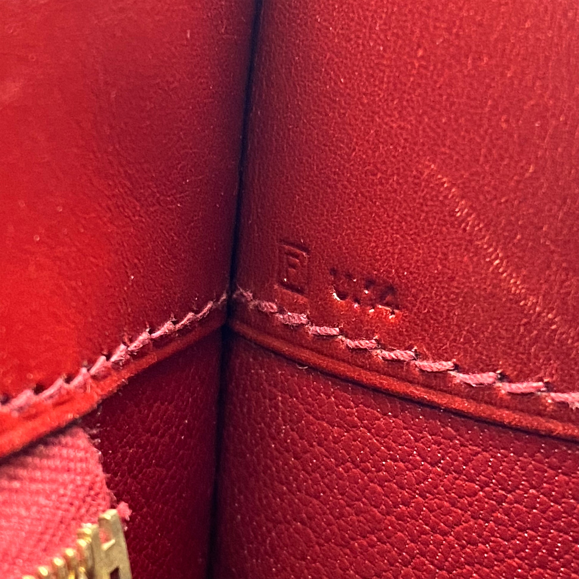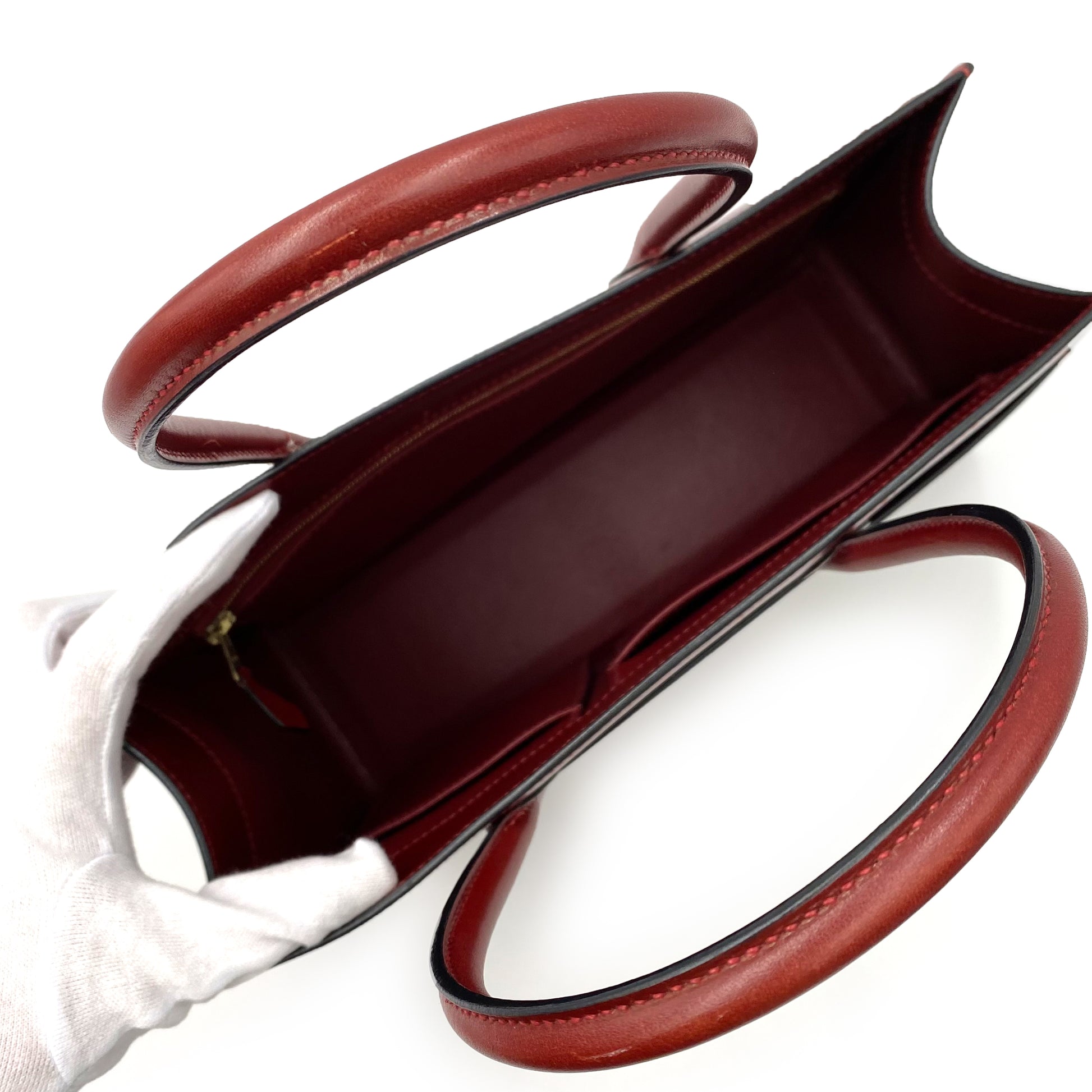 HERMES WHITE BUS PM ROUGE H BOXCALF HAND BAG □F 90237366