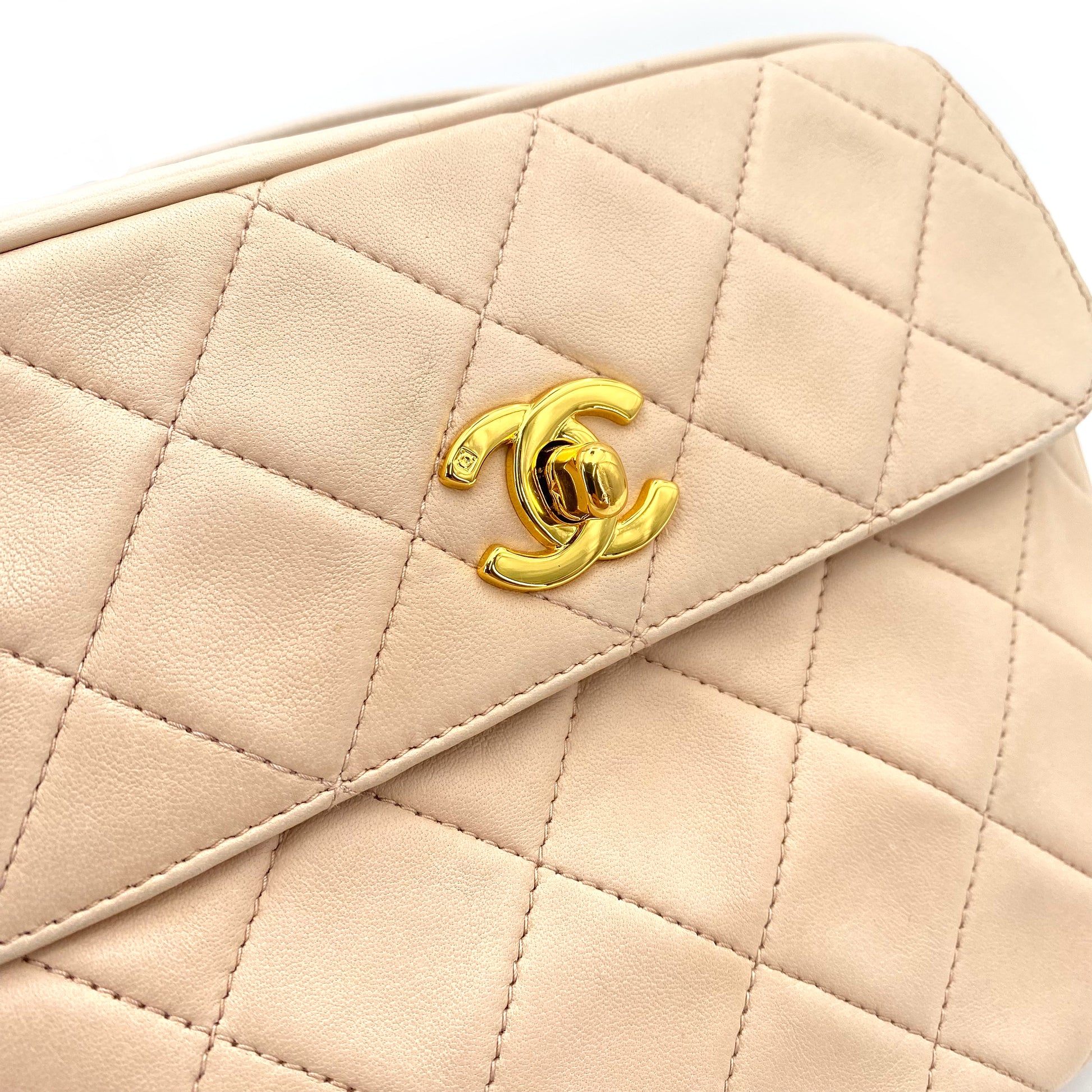 CHANEL VINTAGE MATELASSE CHAIN SHOULDER BAG LIGHT BEIGE LAMB SKIN 90242329