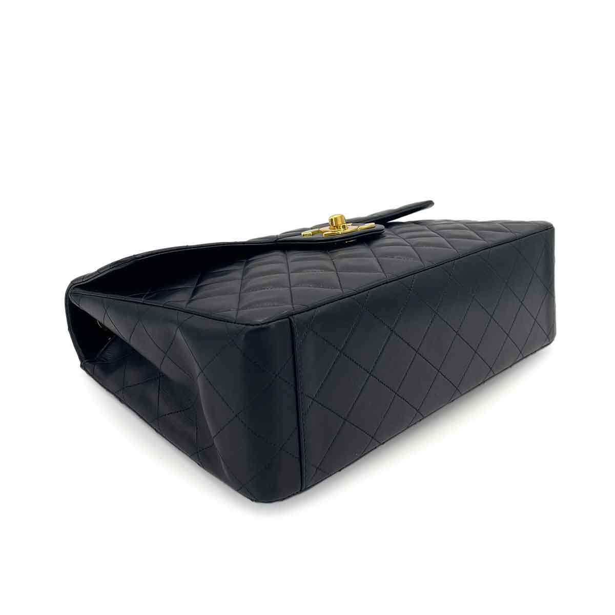CHANEL VINTAGE MAXI MATELASSE 34 CHAIN SHOULDER BAG BLACK LAMB SKIN 90242647