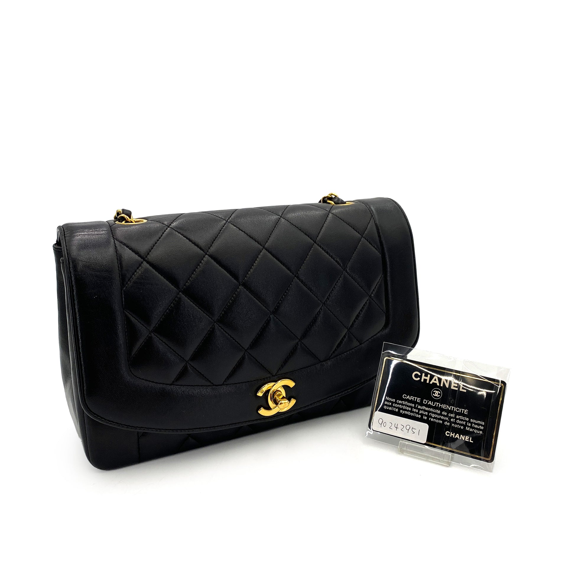 CHANEL VINTAGE DIANA MEDIUM CHAIN SHOULDER BAG BLACK LAMB SKIN 90242951