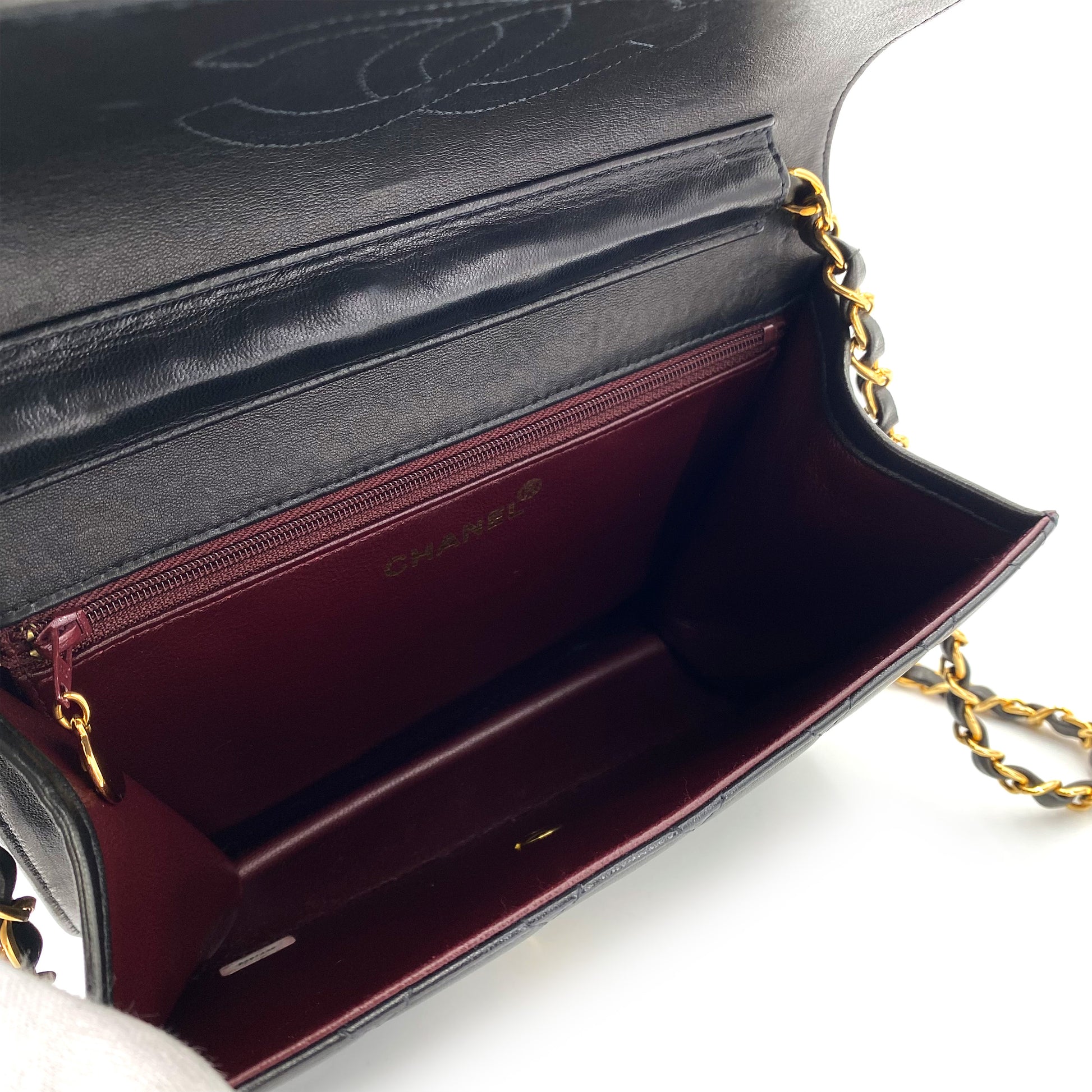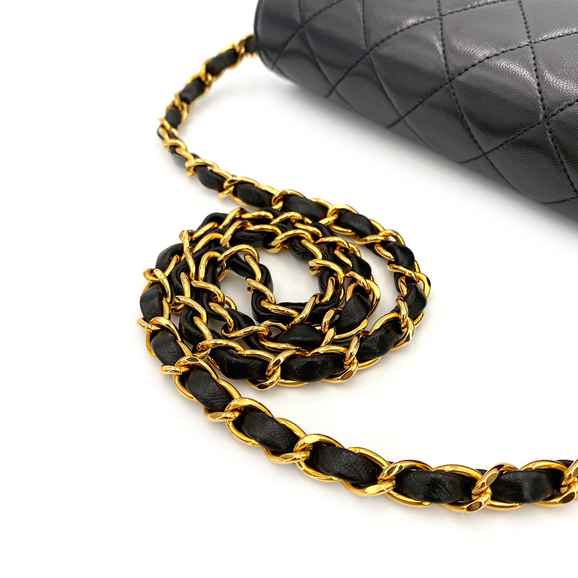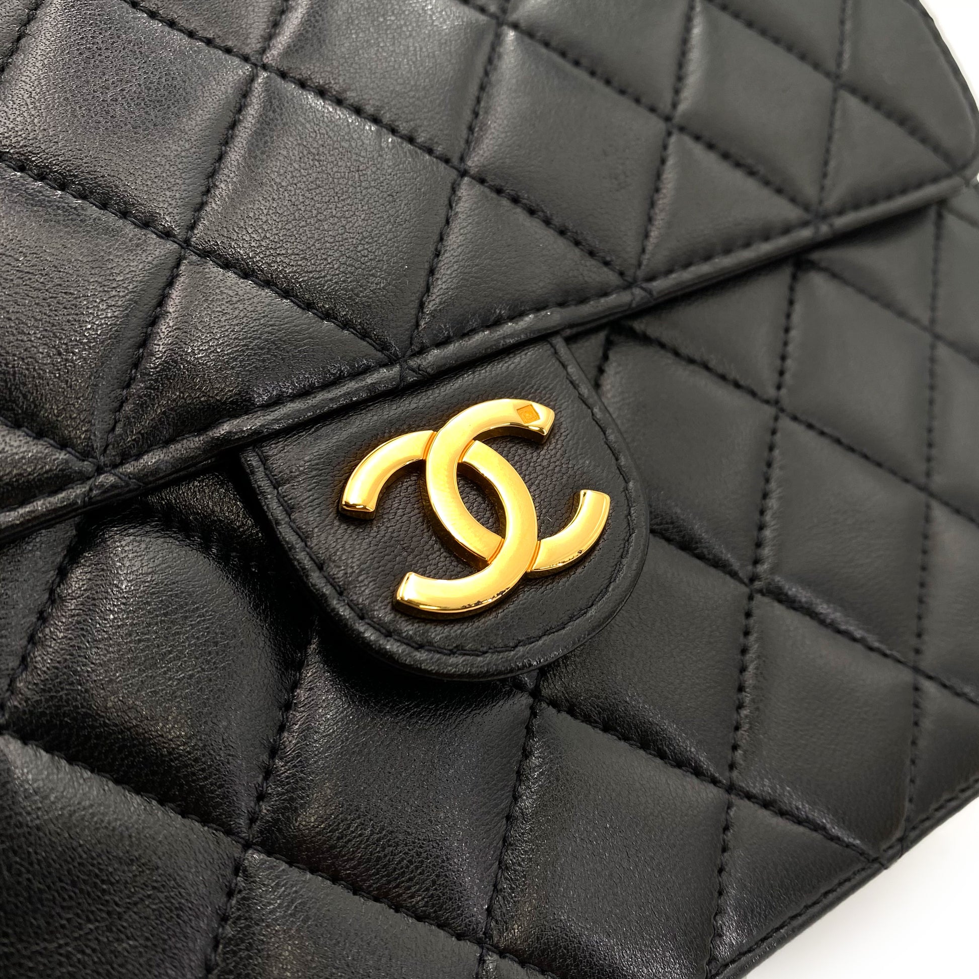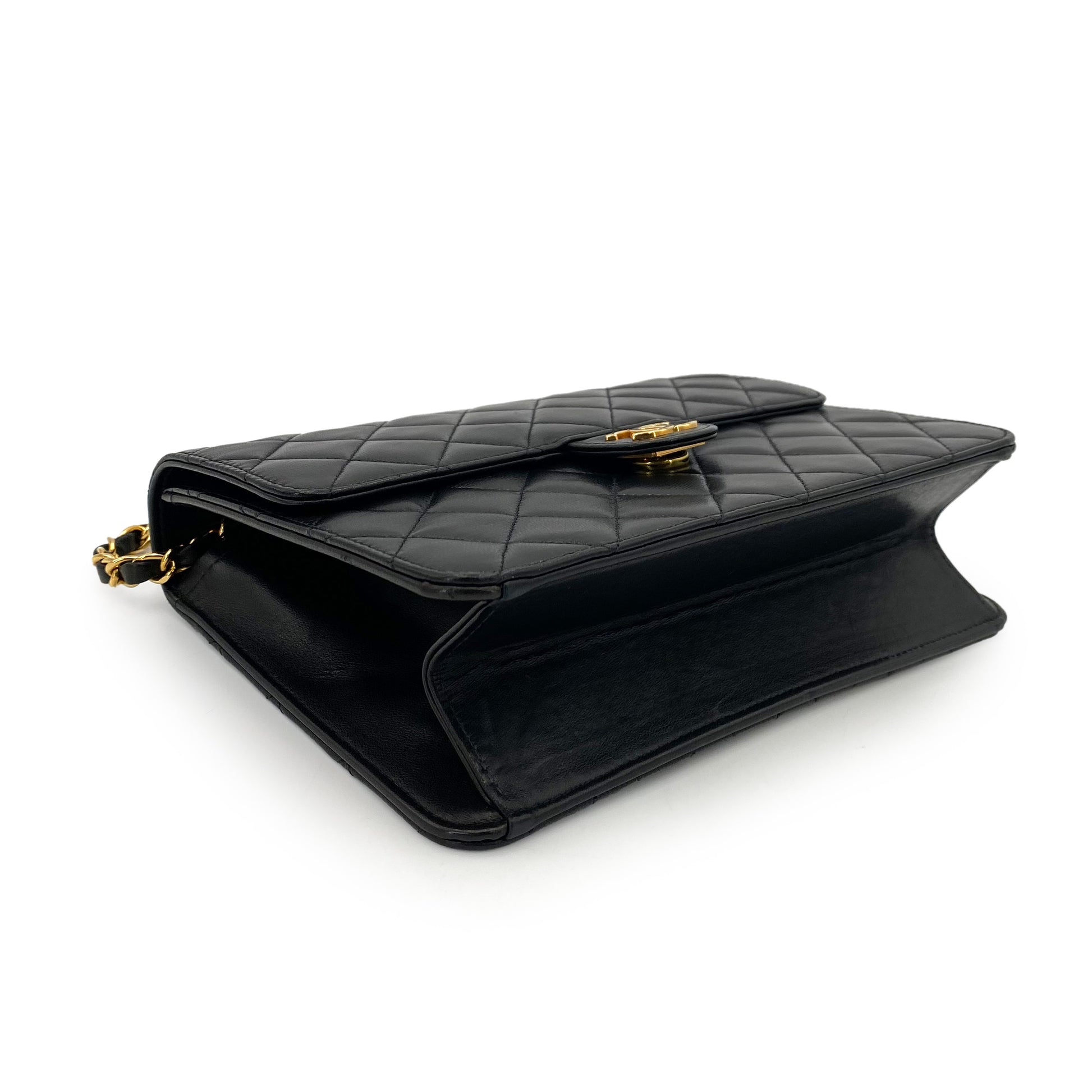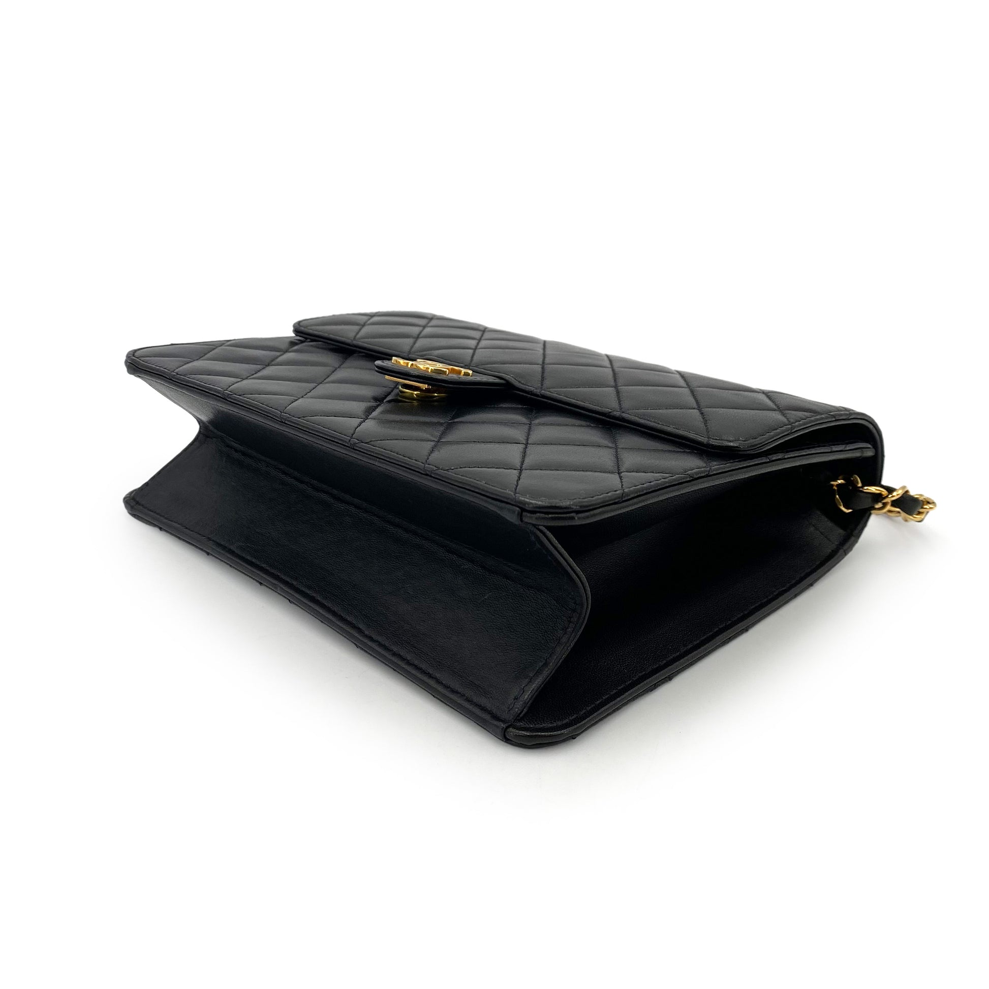 CHANEL VINTAGE MATELASSE PUSH LOCK CHAIN SHOULDER BAG BLACK LAMB SKIN 90242967