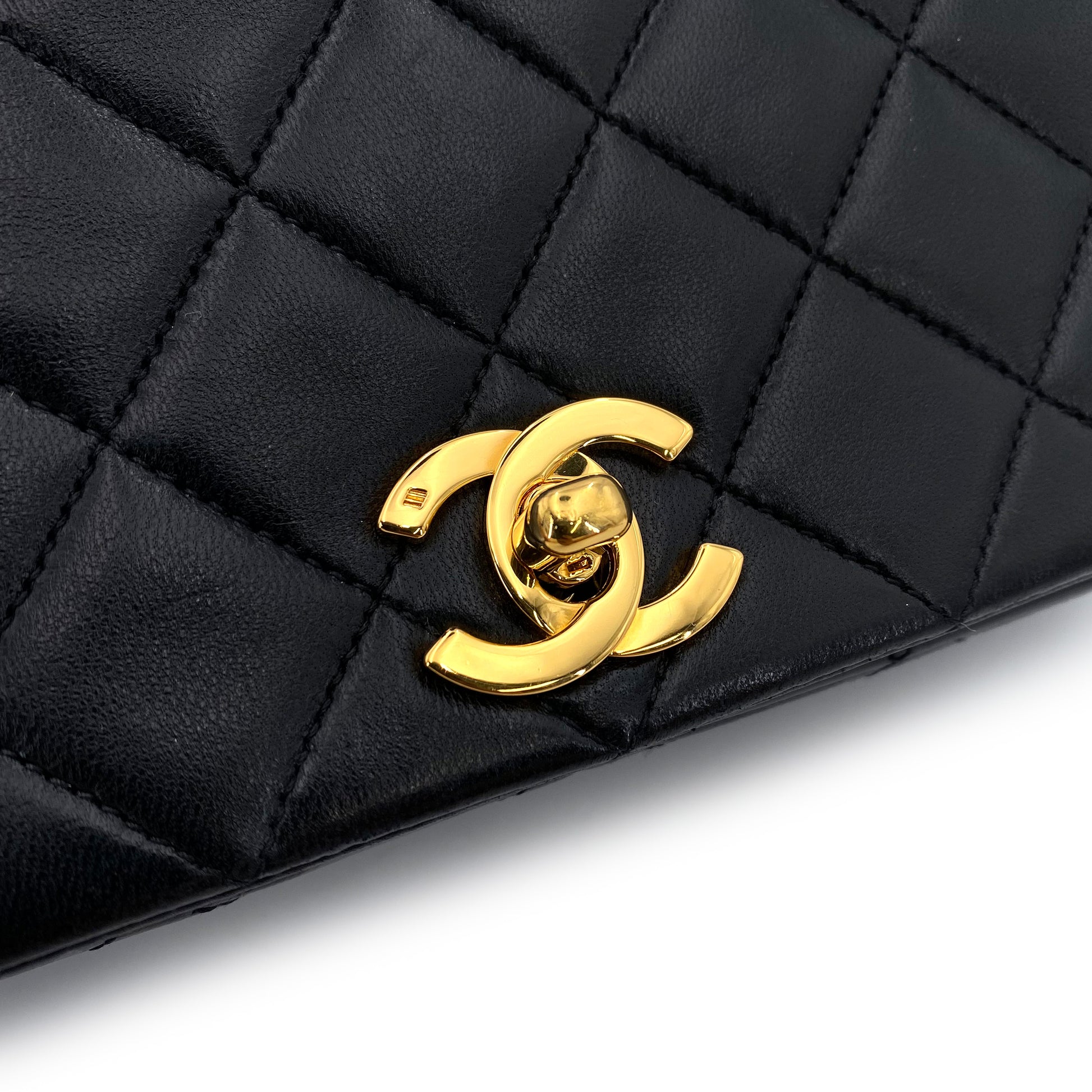 CHANEL VINTAGE FULL FLAP CHAIN SHOULDER BAG BLACK LAMB SKIN 90242976