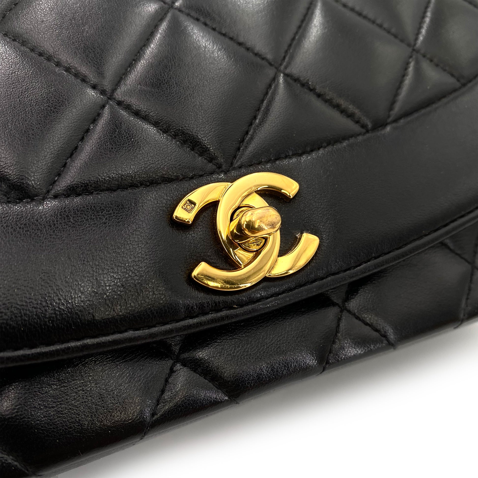 CHANEL VINTAGE DIANA MEDIUM CHAIN SHOULDER BAG BLACK LAMB SKIN 90242978