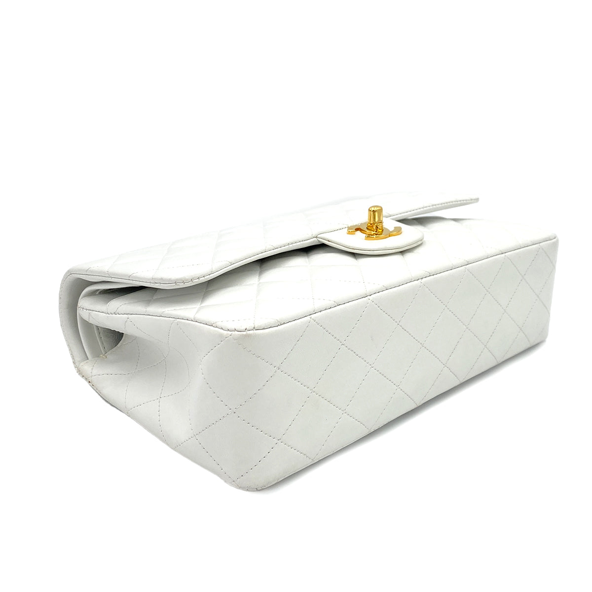 CHANEL VINTAGE CLASSIC FLAP MEDIUM CHAIN SHOULDER BAG WHITE LAMB SKIN 90244080