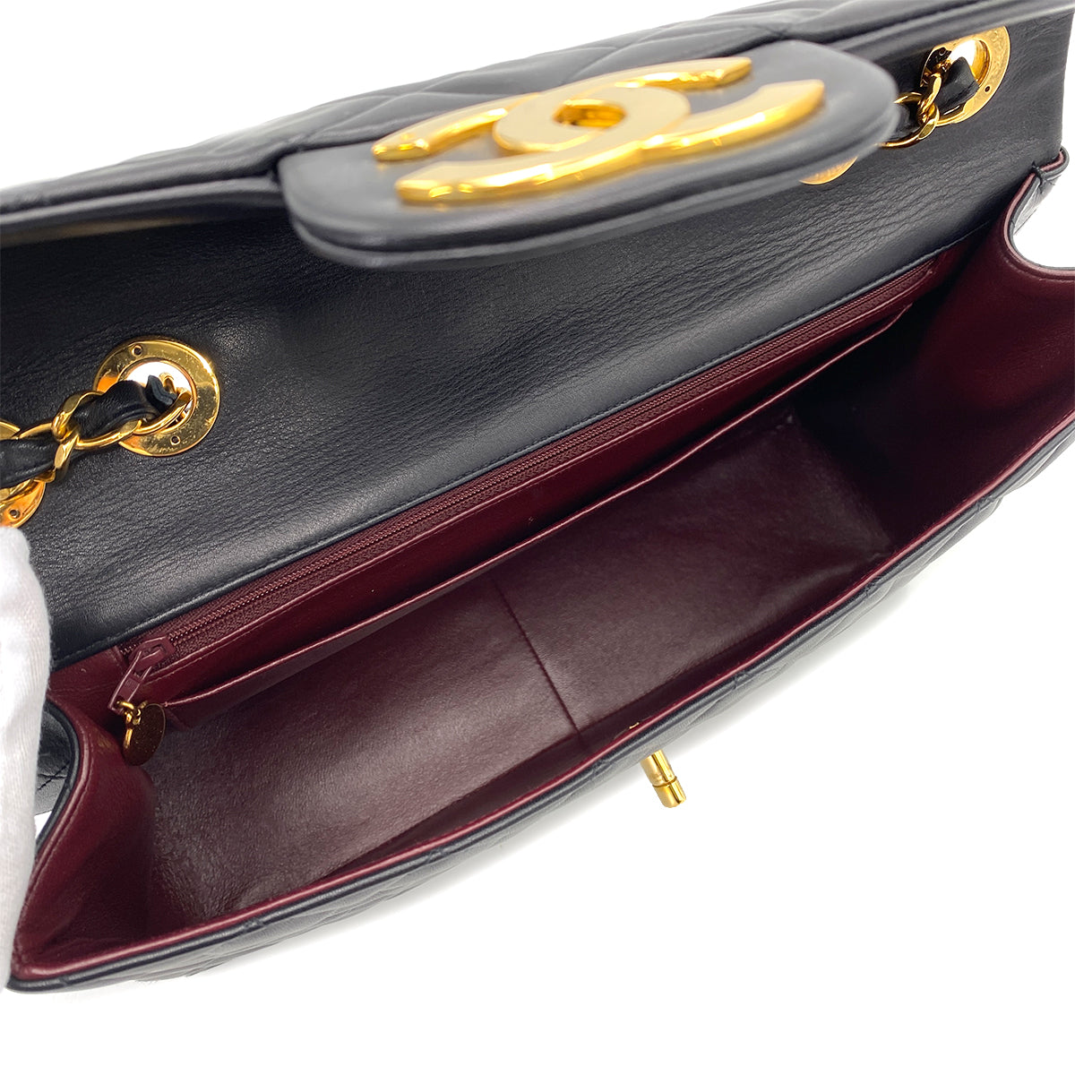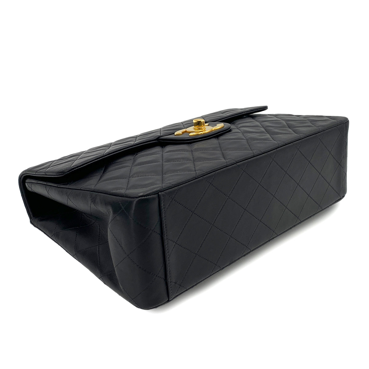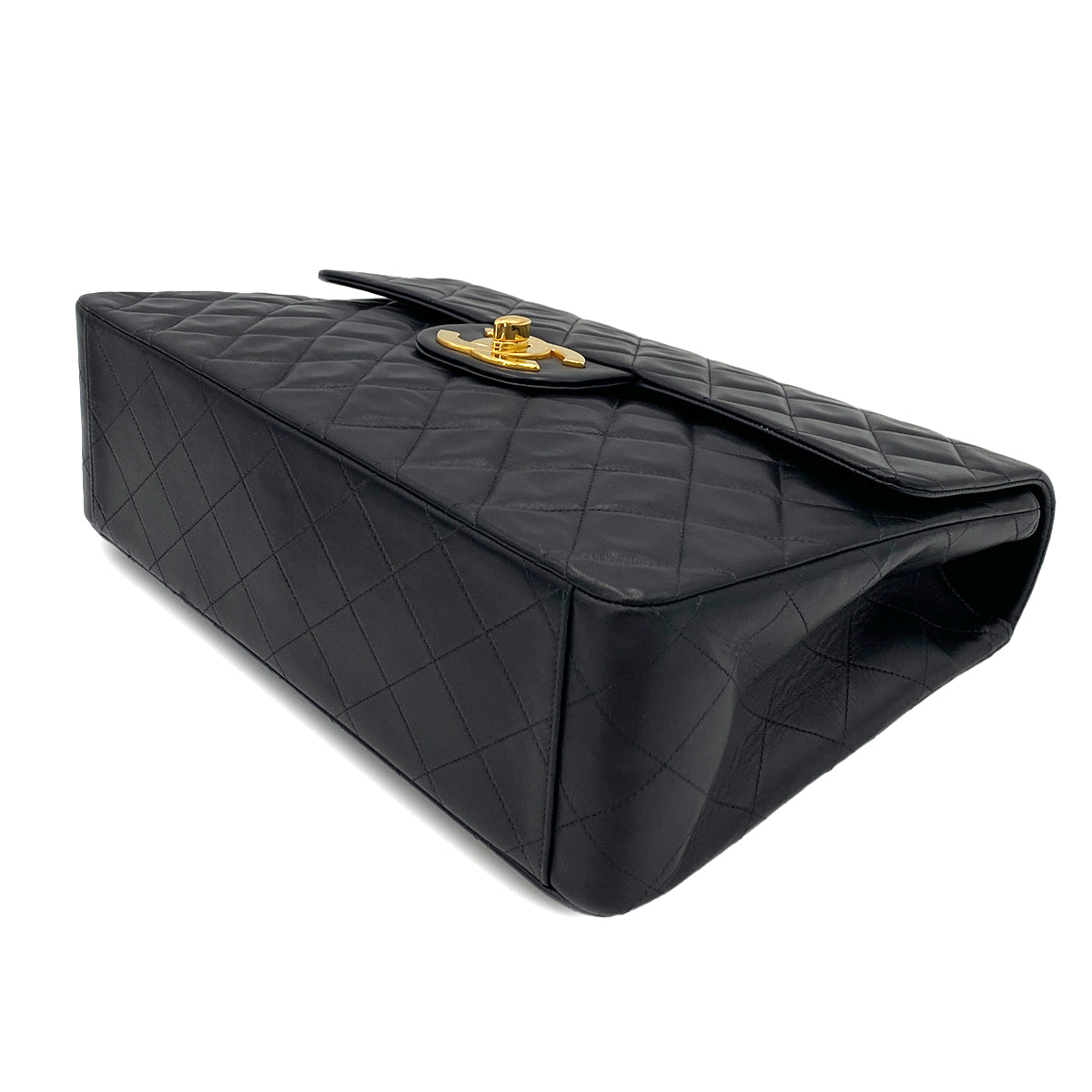 CHANEL VINTAGE MAXI MATELASSE 34 CHAIN SHOULDER BAG BLACK LAMB SKIN 90244698
