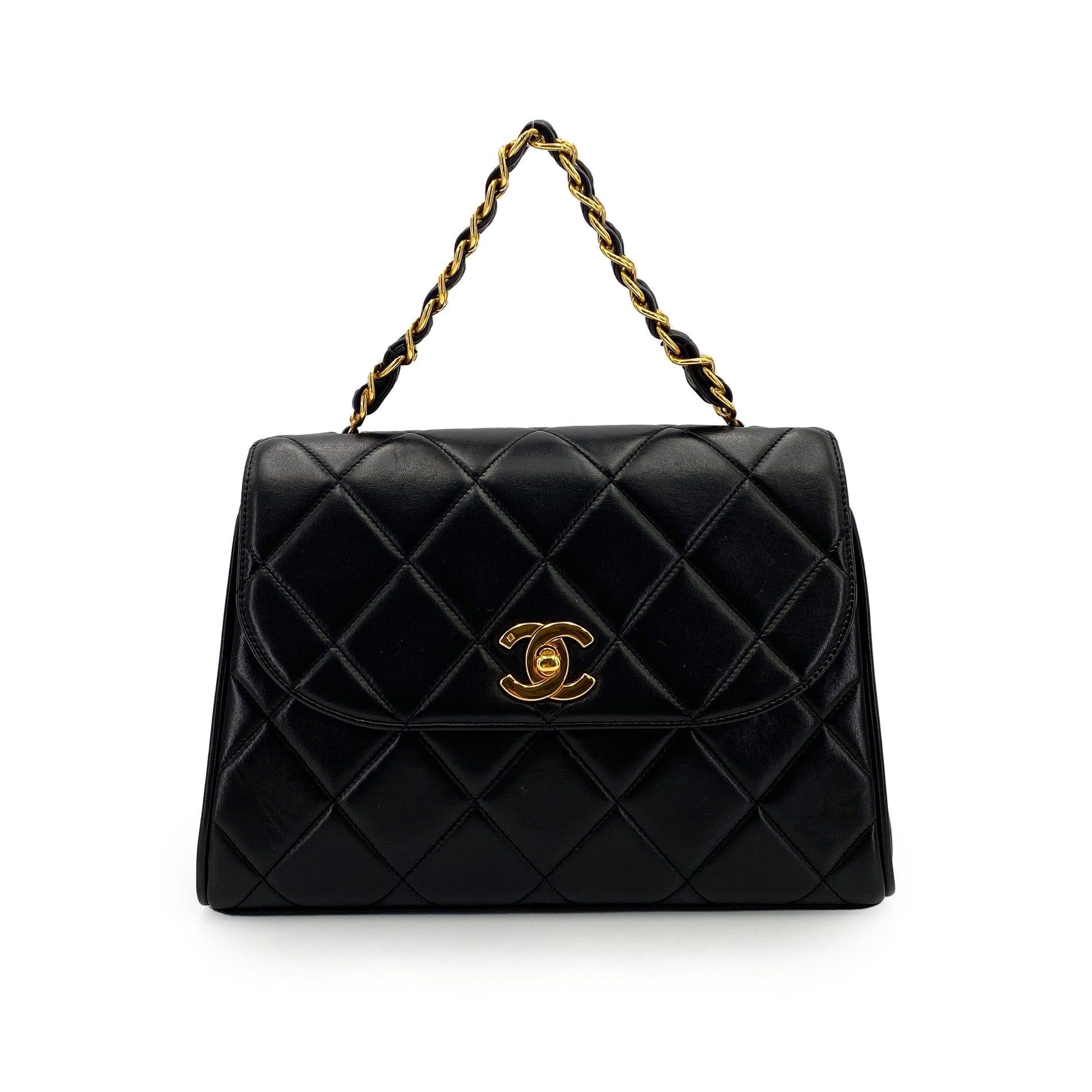 CHANEL VINTAGE MATELASSE CHAIN HAND BAG BLACK LAMB SKIN 90244749
