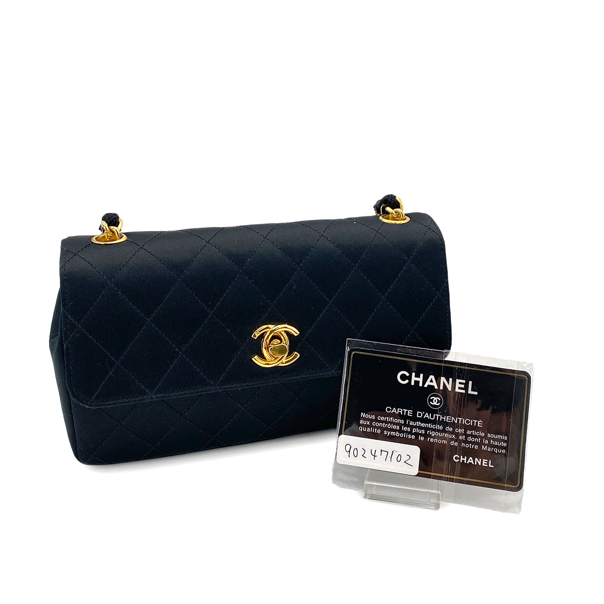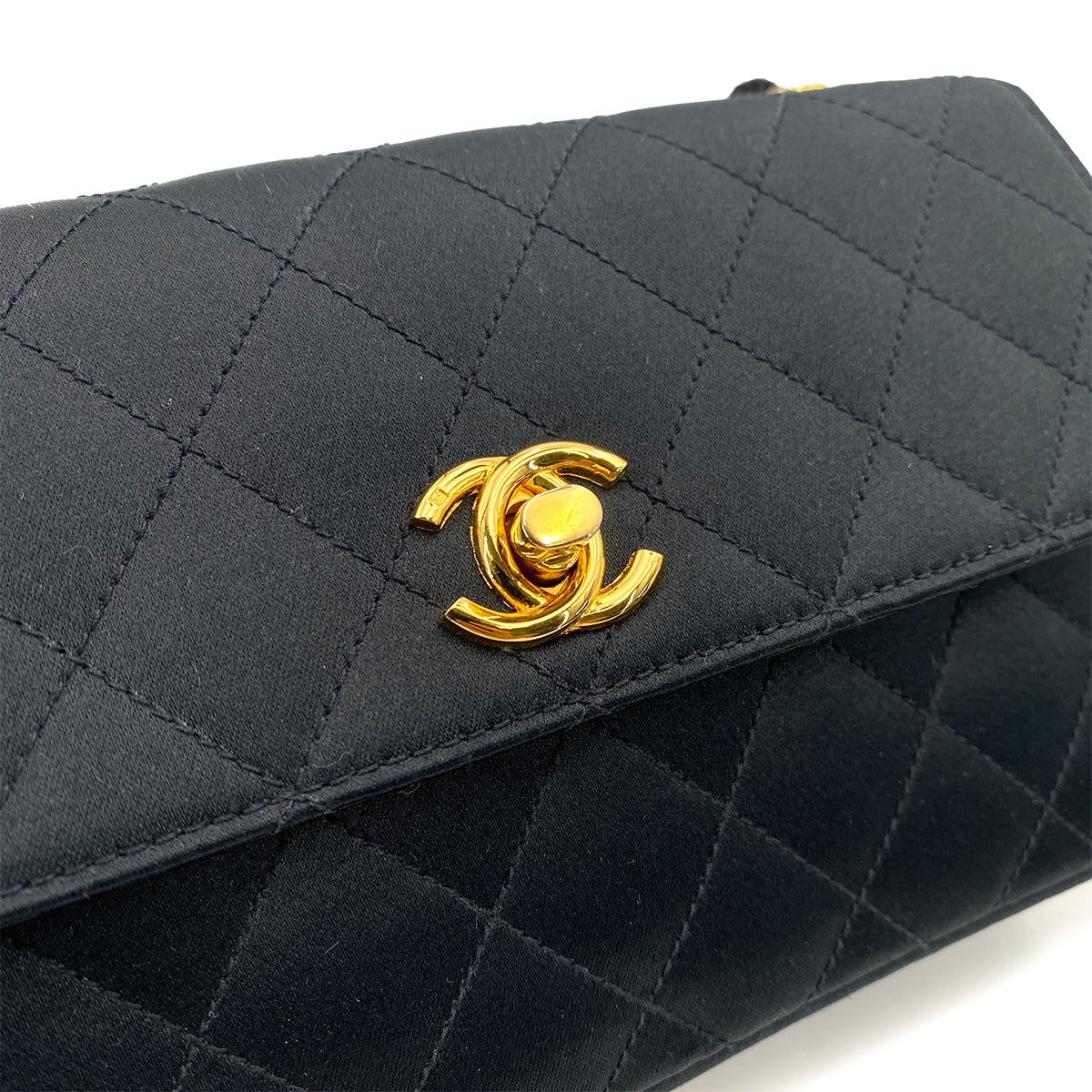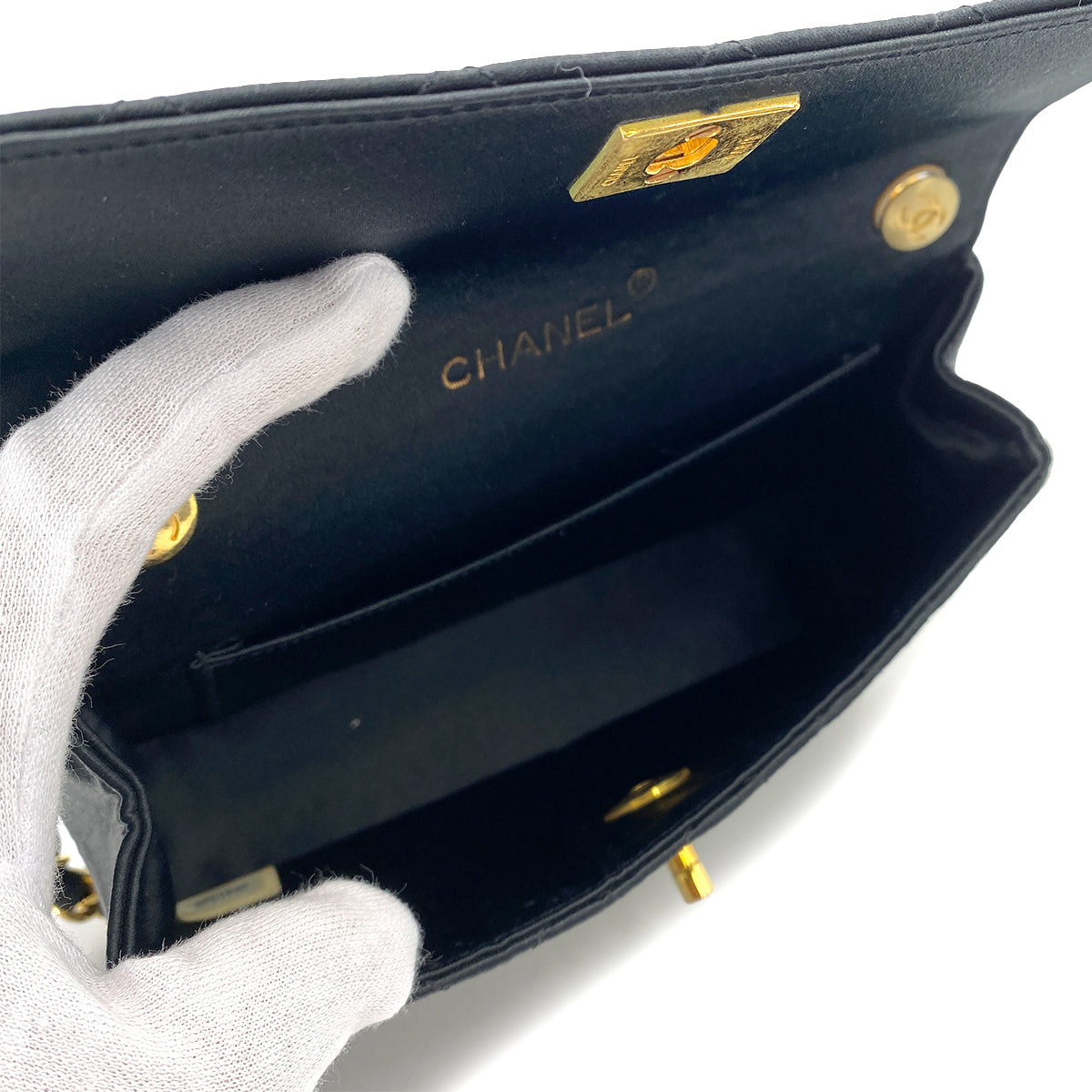 CHANEL VINTAGE MATELASSE CHAIN SHOULDER BAG BLACK SATIN 90247102