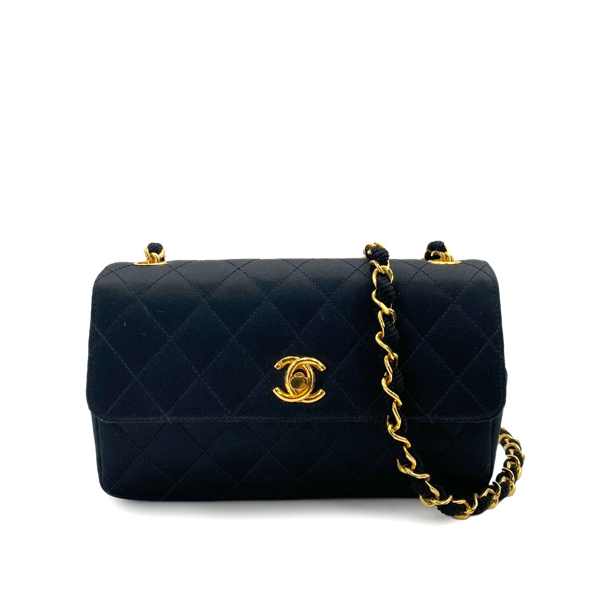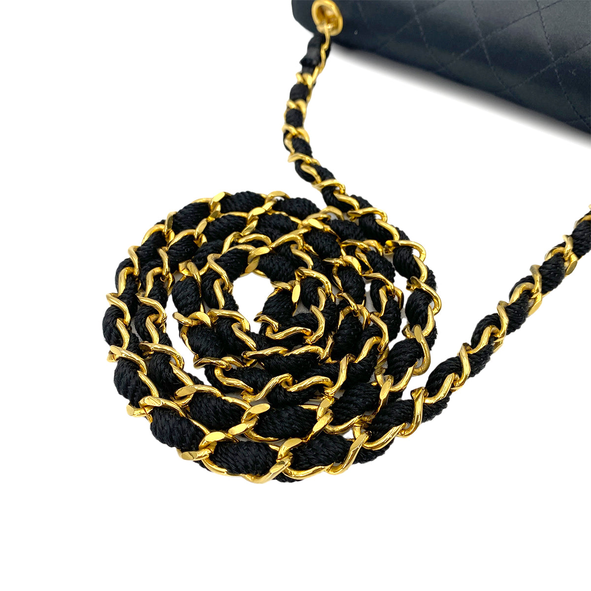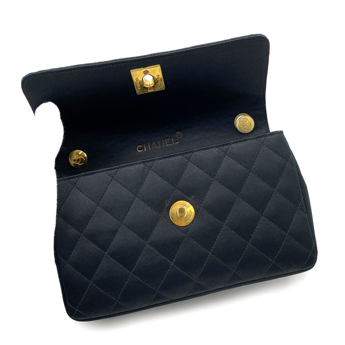 CHANEL VINTAGE MATELASSE CHAIN SHOULDER BAG BLACK SATIN 90247102