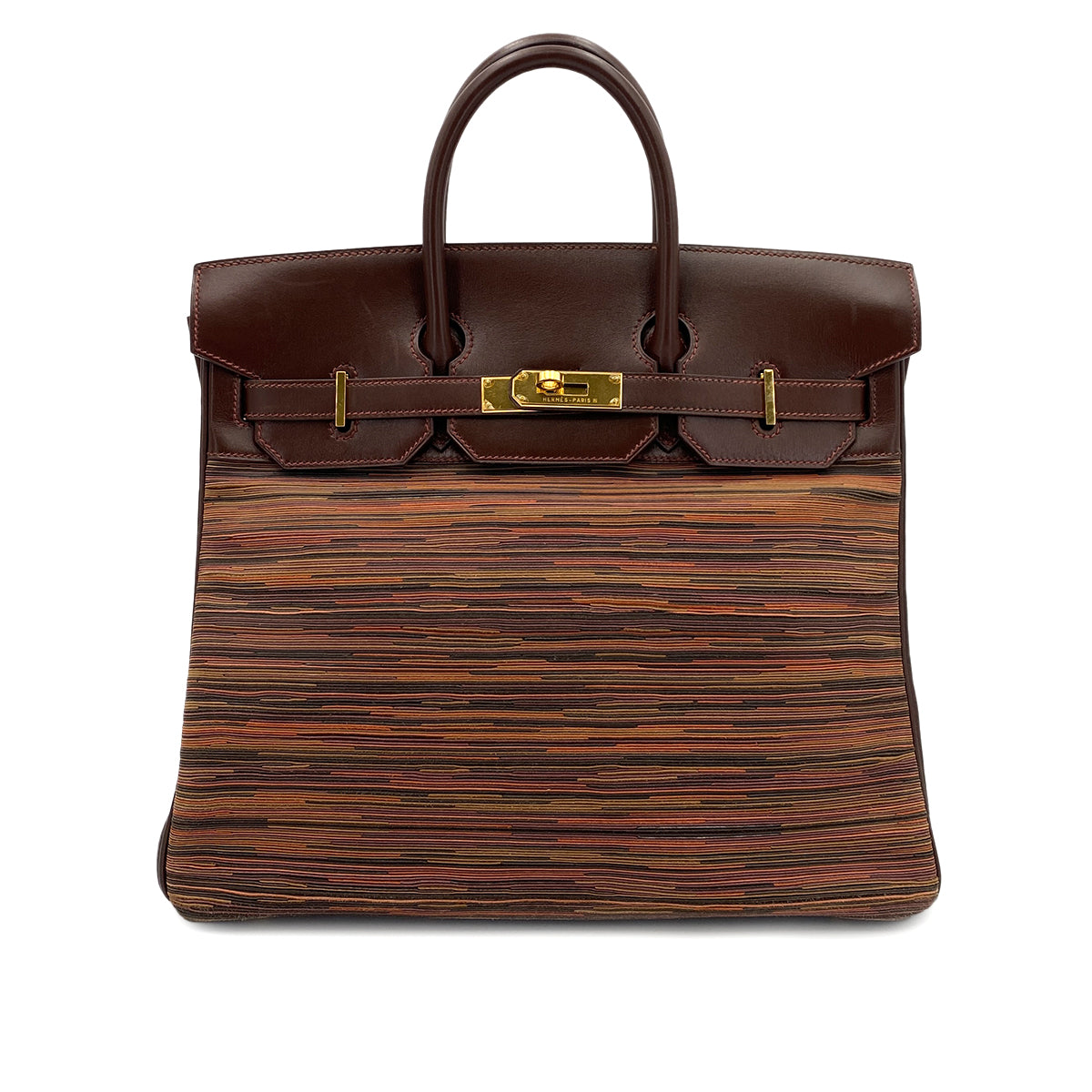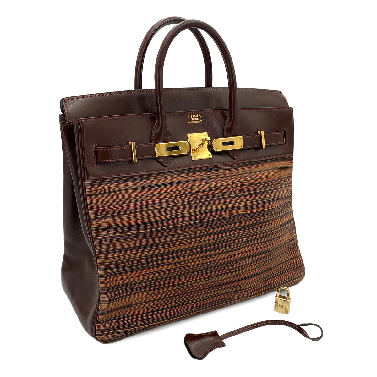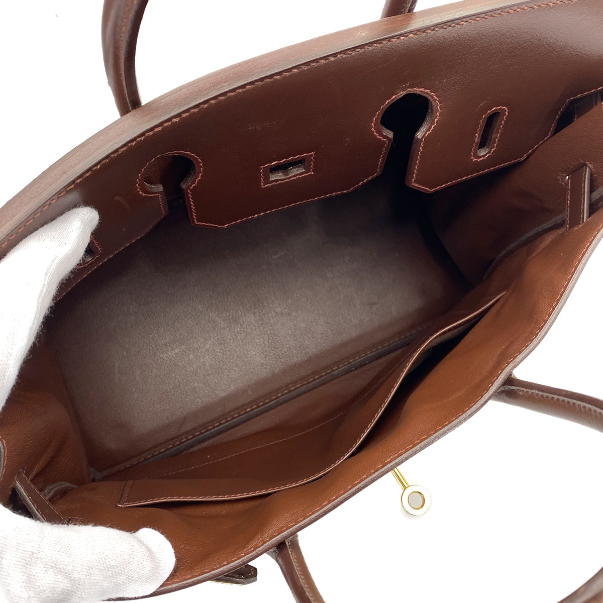 HERMES HAUT A COURROIES 32 BROWN VIBRATO BOXCALF HAND BAG □D 90247167