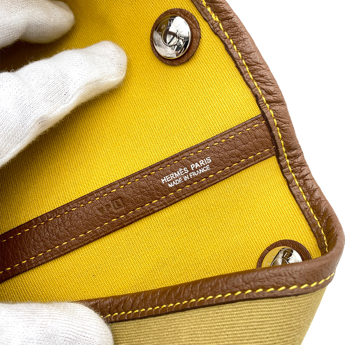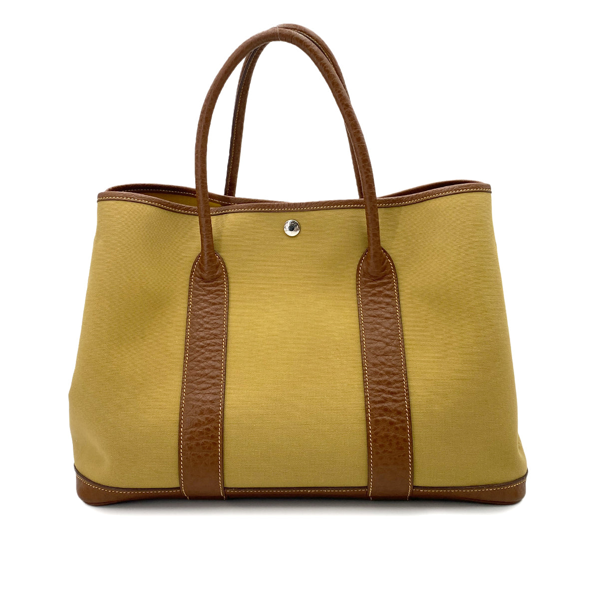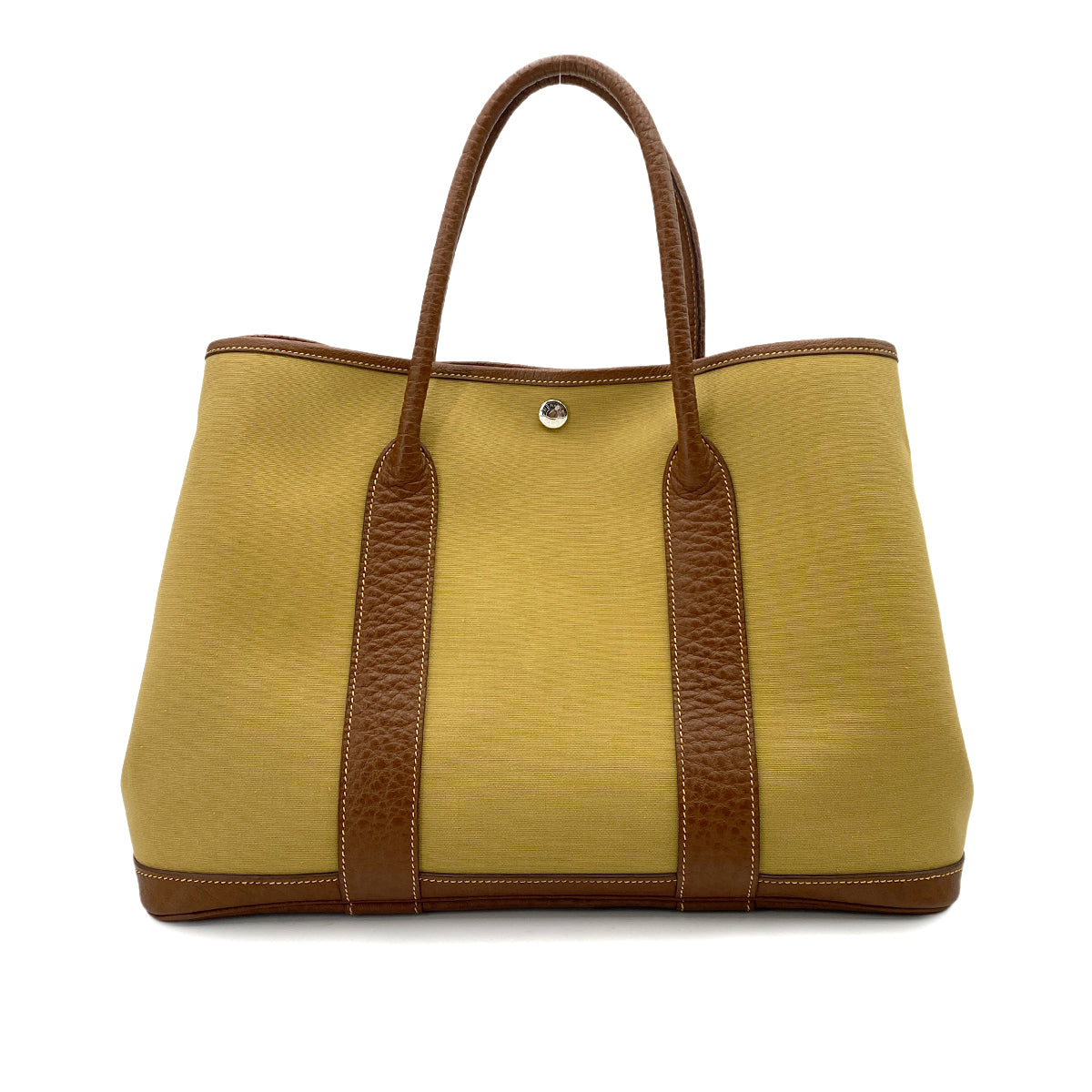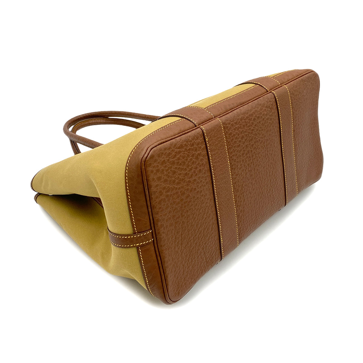 HERMES GARDEN PARTY PM VERSO KAHKI BROWN TOILE OFFICIER LEATHER TOTE BAG □L 90247295