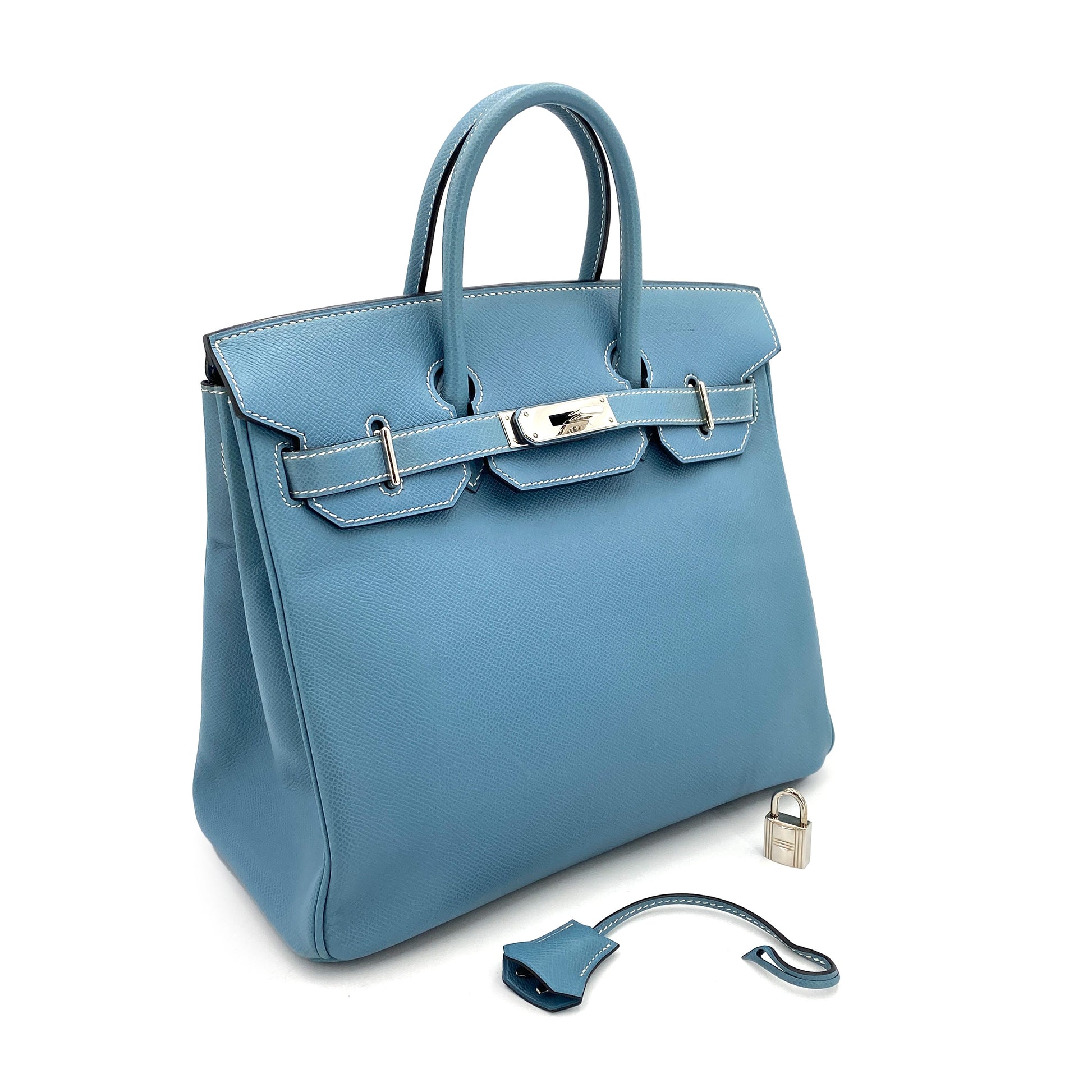 HERMES HAUT A COURROIES 28 BLUE JEAN EPSOM HAND BAG ▢J SHW 90247398