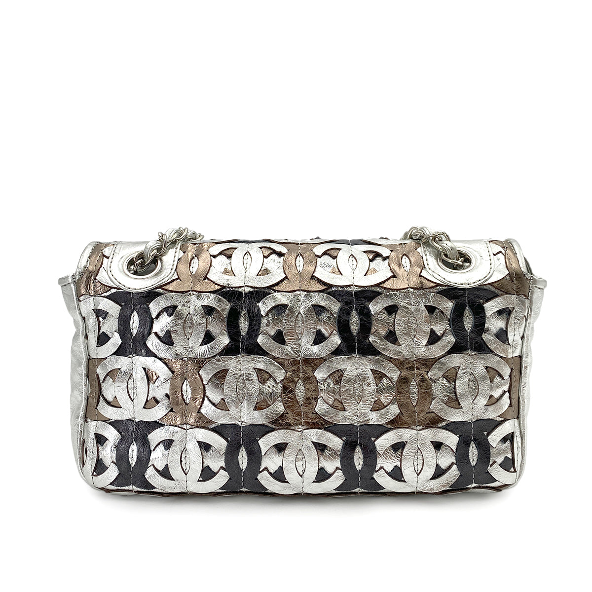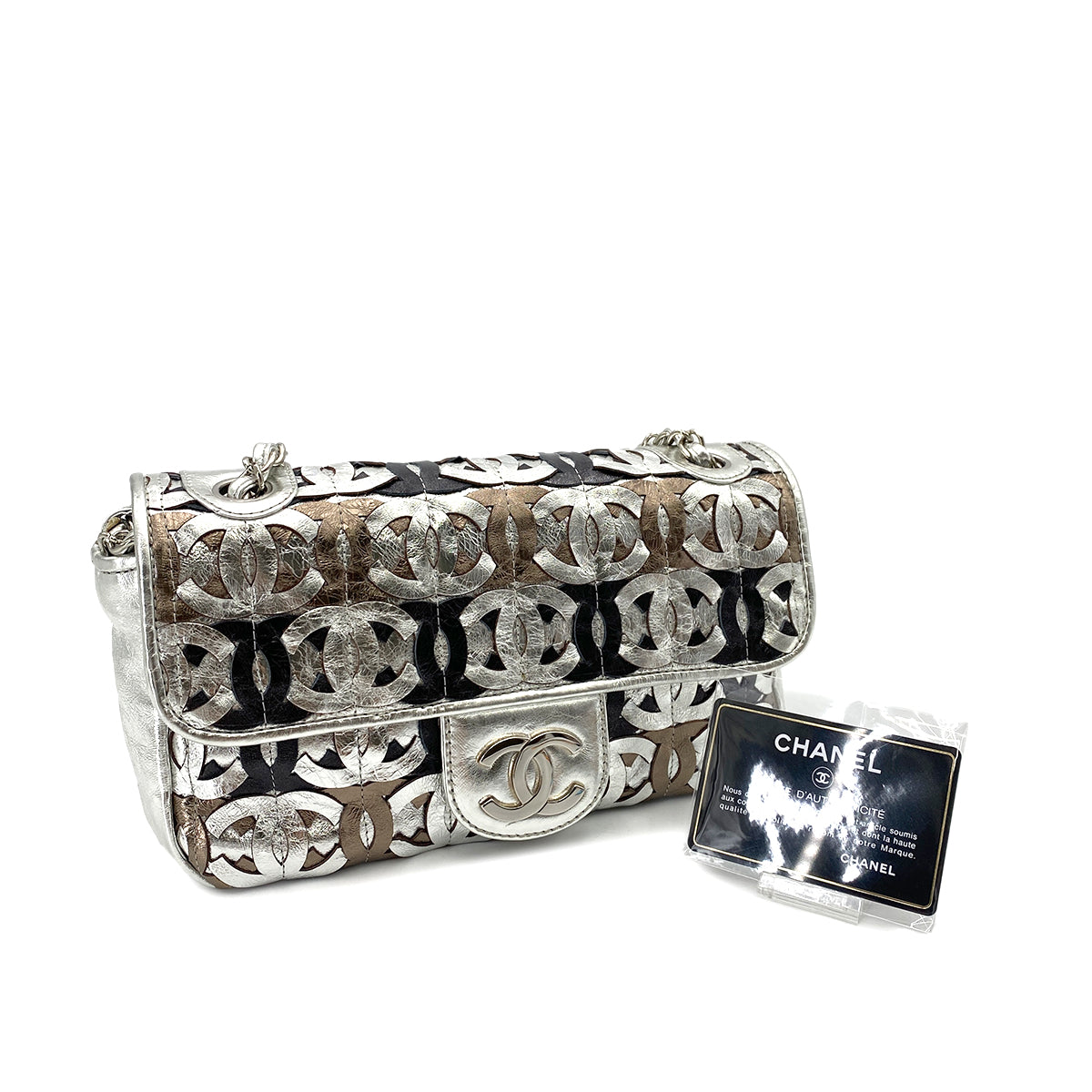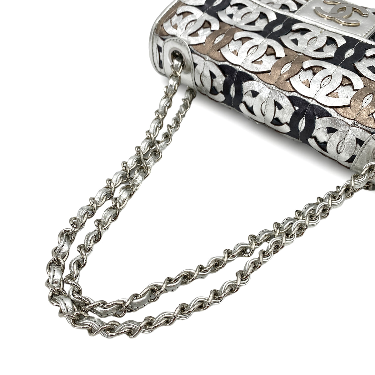 CHANEL VINTAGE CC PATCHWORK CHAIN SHOULDER BAG SILVER LEATHER 90247988