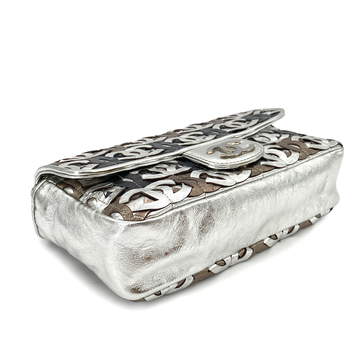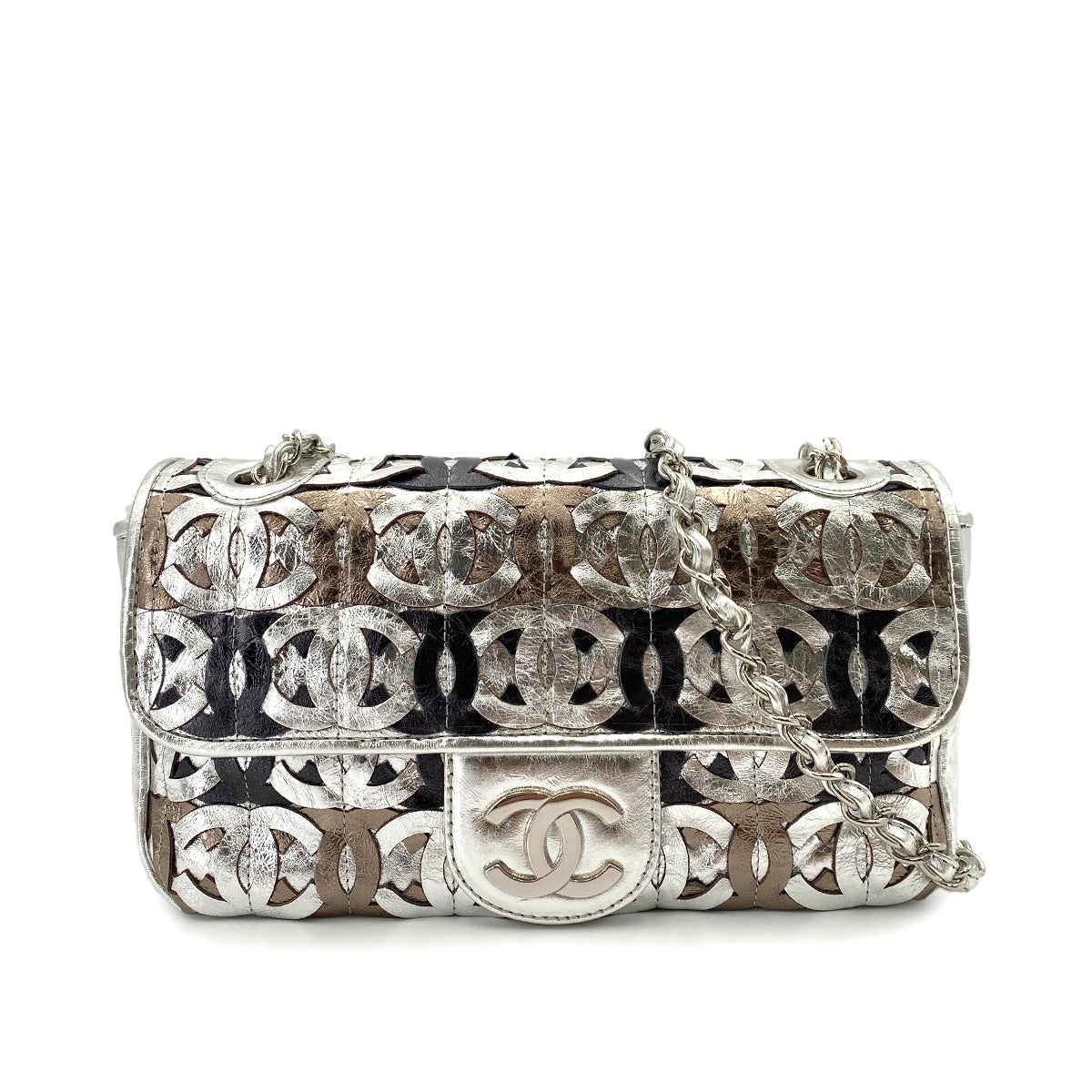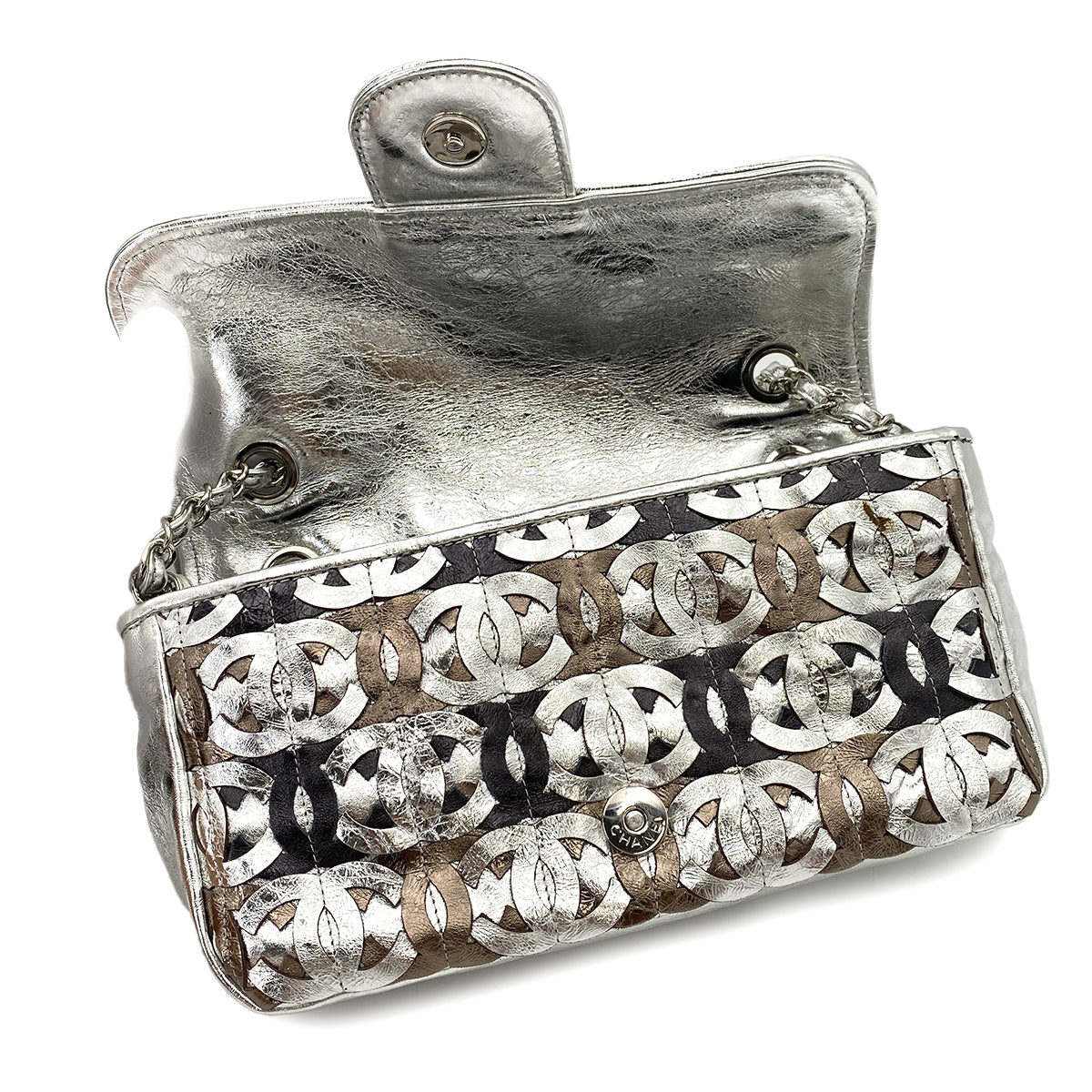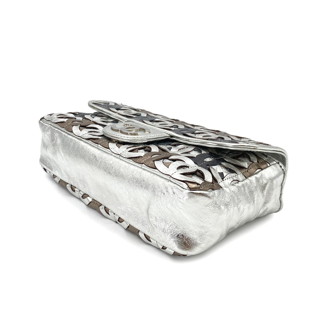 CHANEL VINTAGE CC PATCHWORK CHAIN SHOULDER BAG SILVER LEATHER 90247988