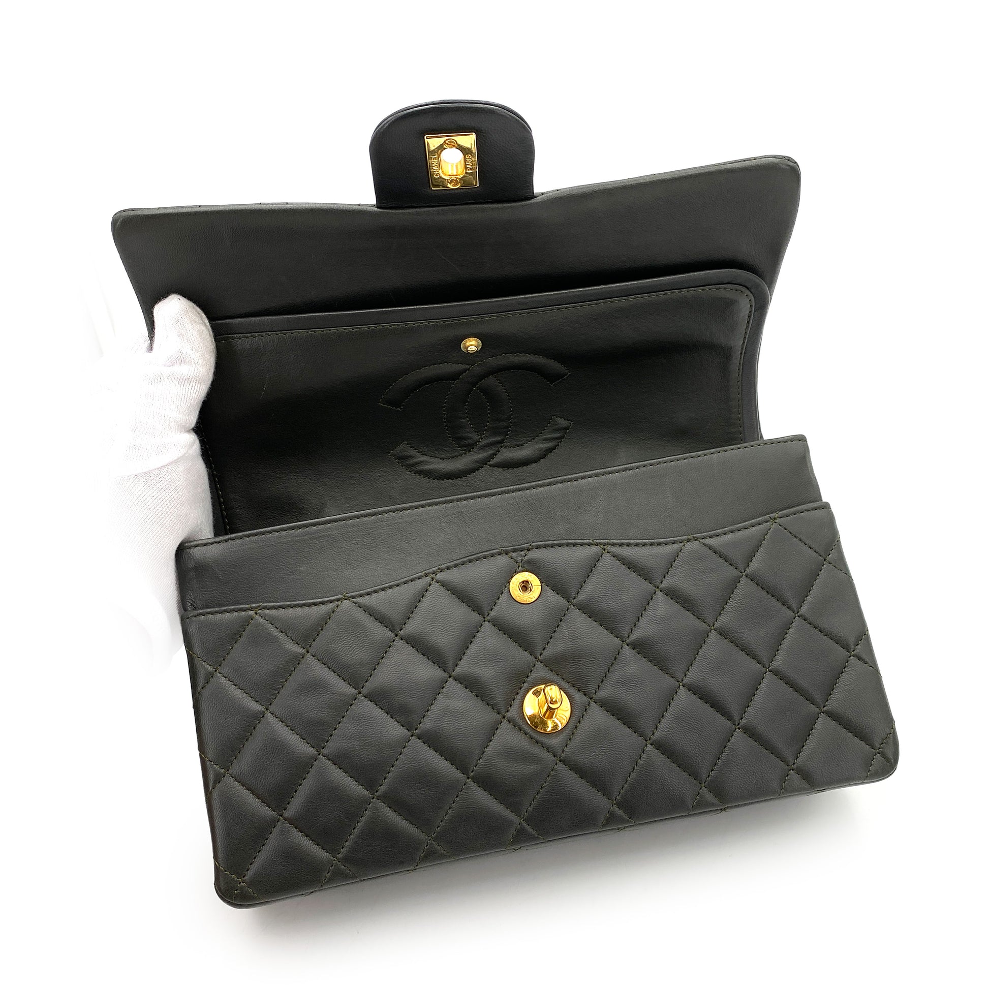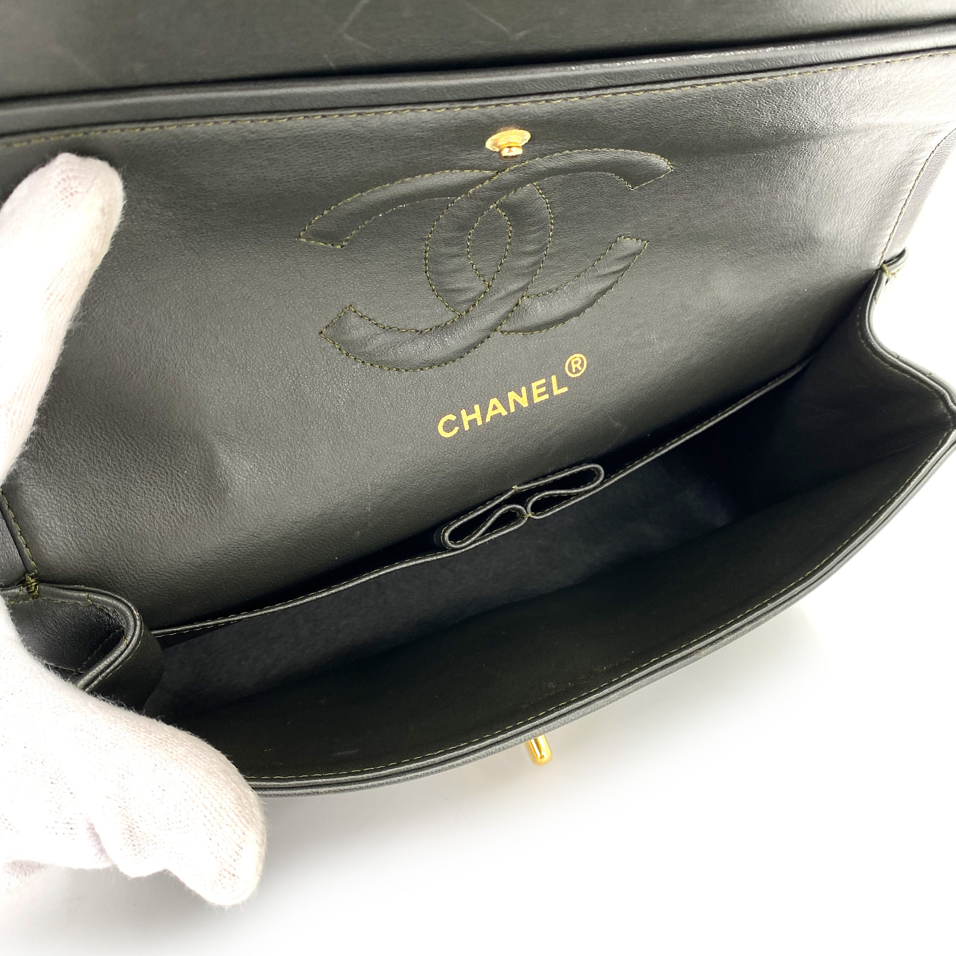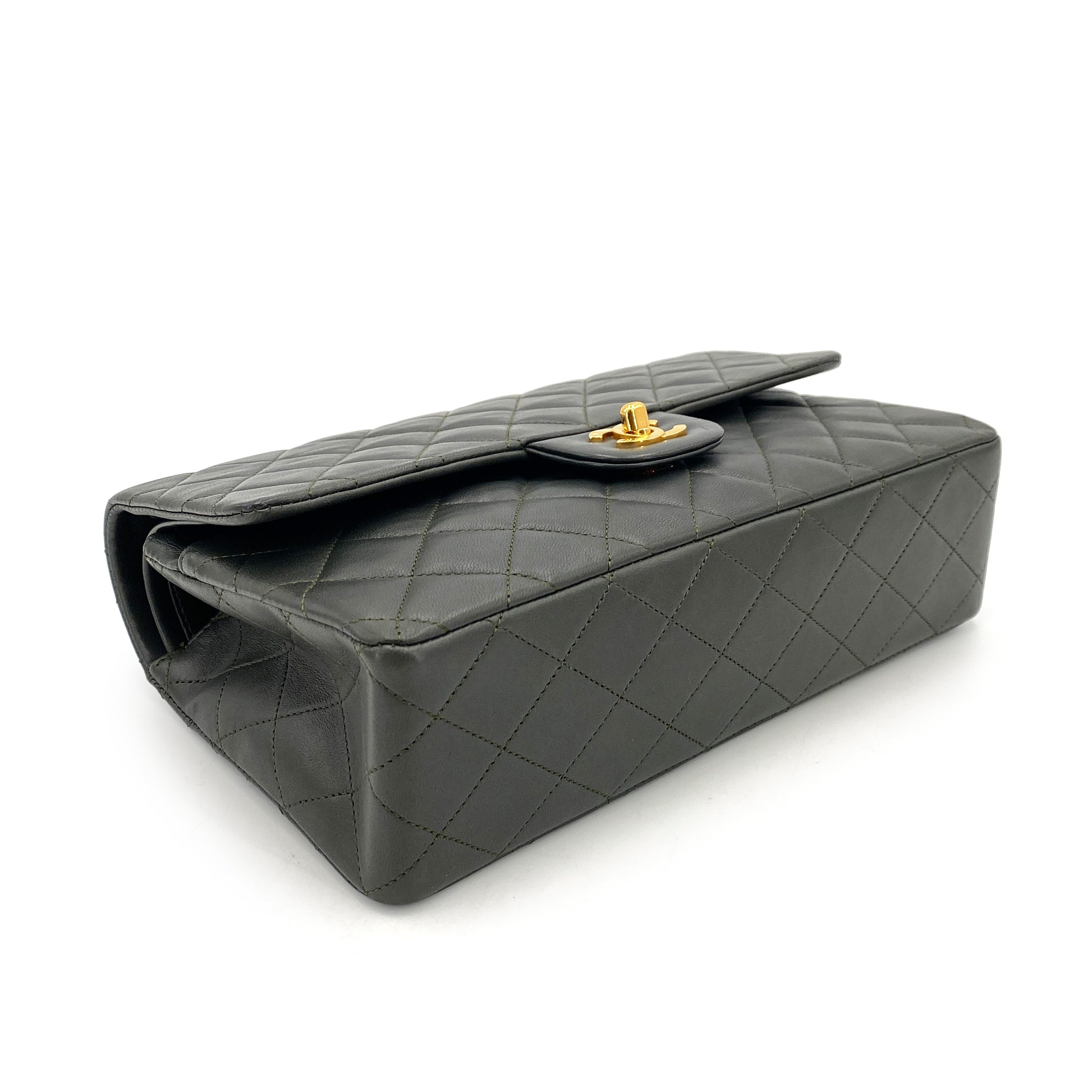 CHANEL VINTAGE CLASSIC FLAP MEDIUM CHAIN SHOULDER BAG KHAKI LAMB SKIN 90247990