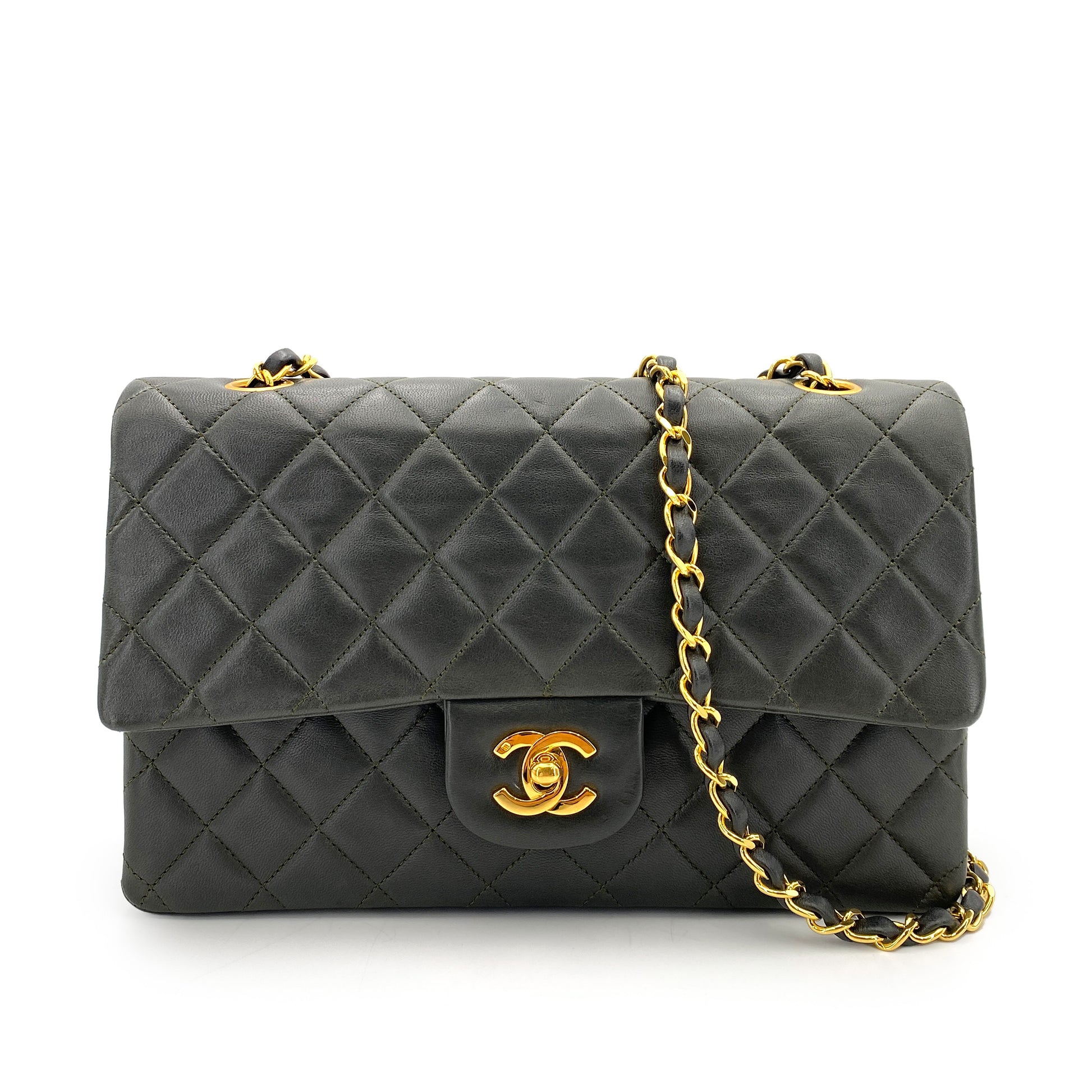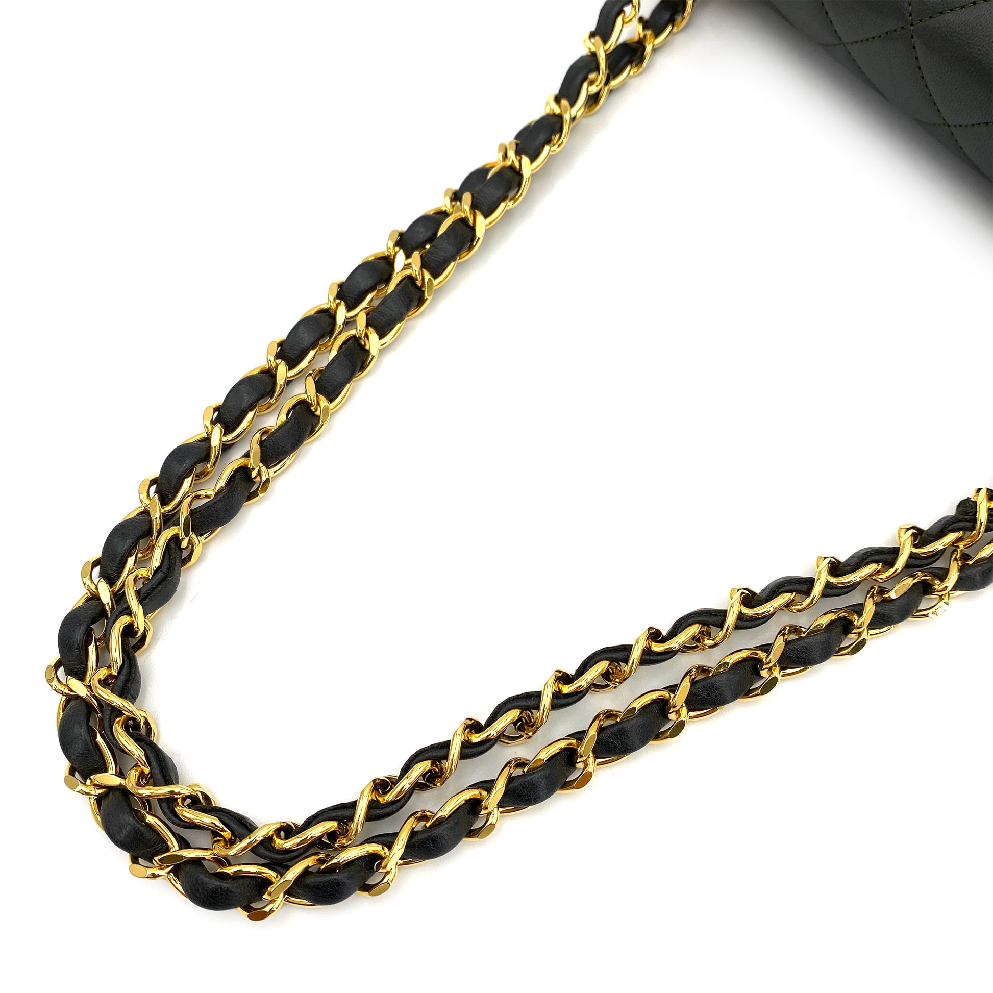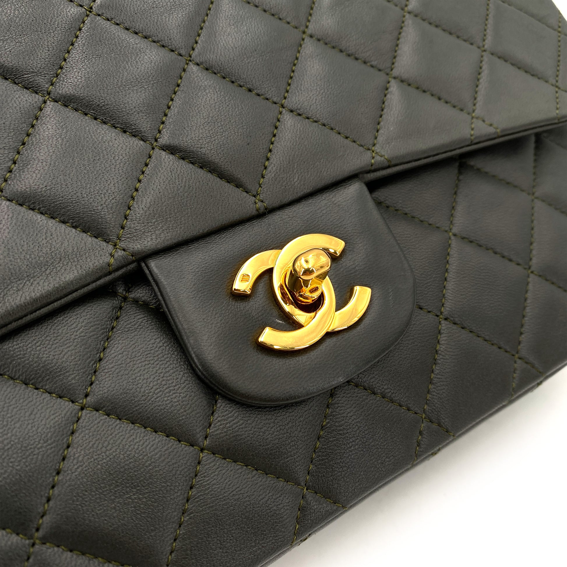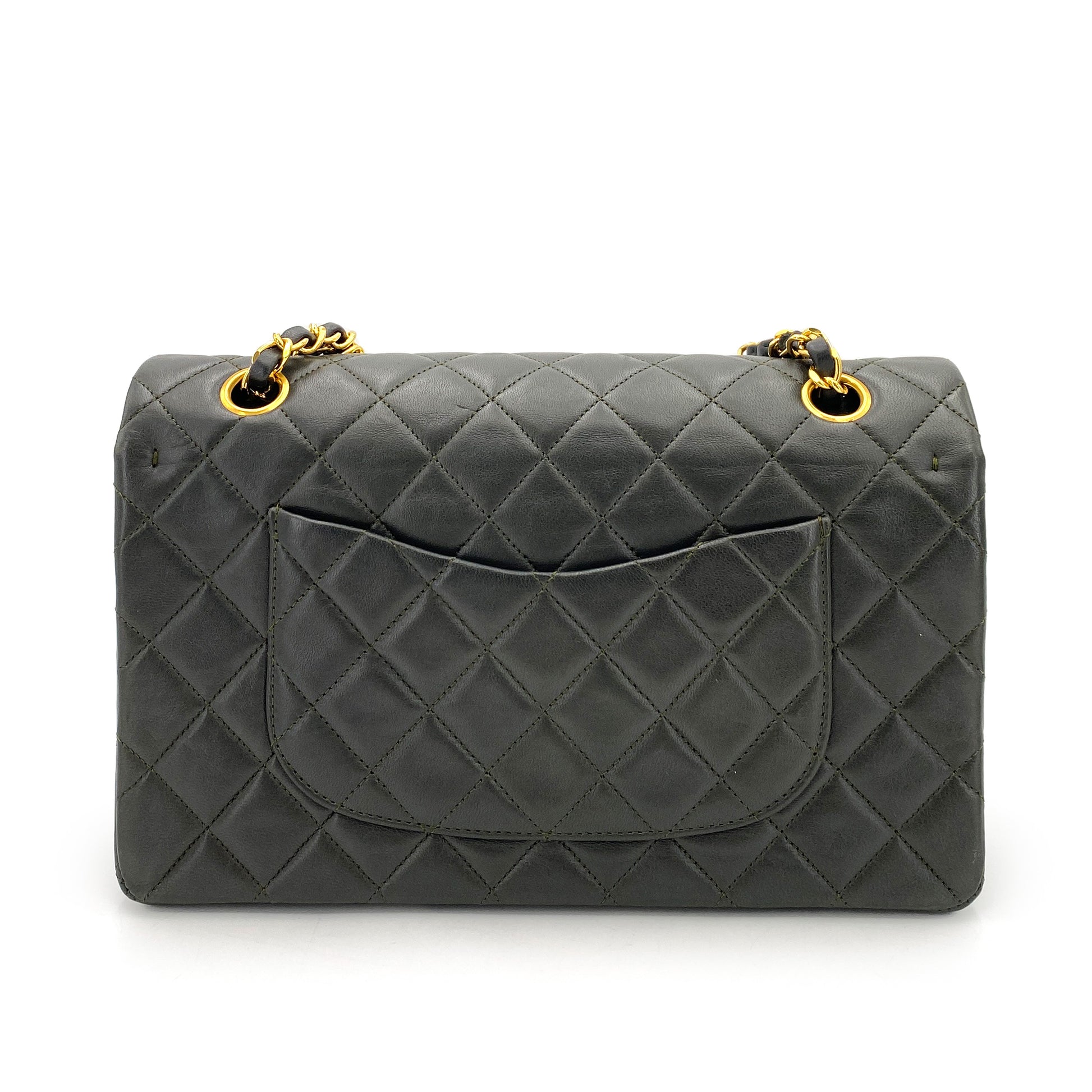 CHANEL VINTAGE CLASSIC FLAP MEDIUM CHAIN SHOULDER BAG KHAKI LAMB SKIN 90247990