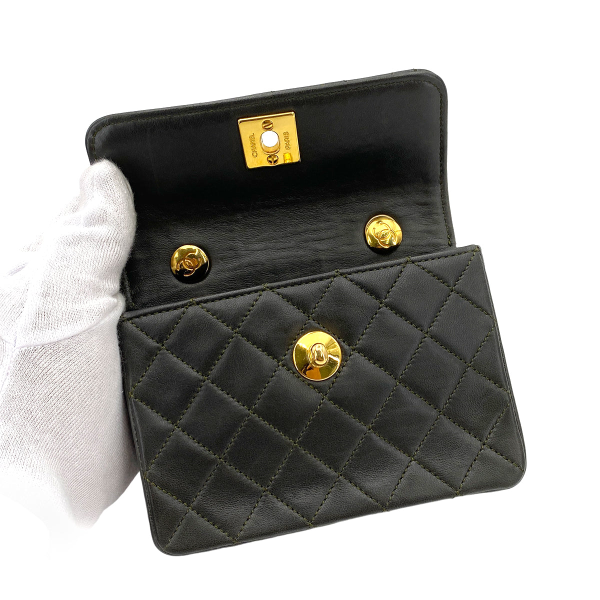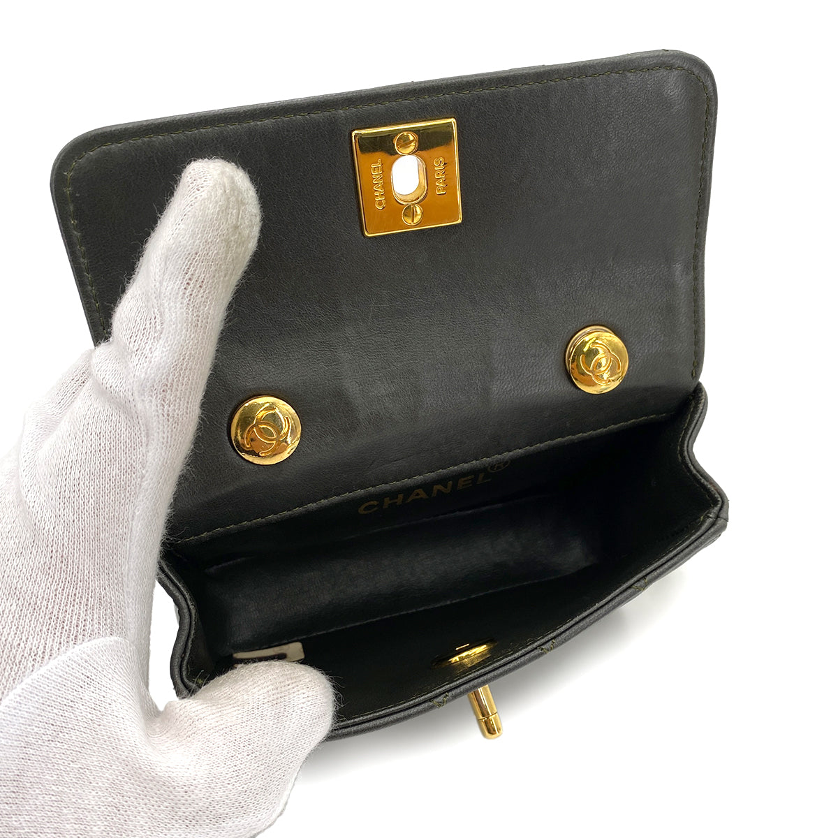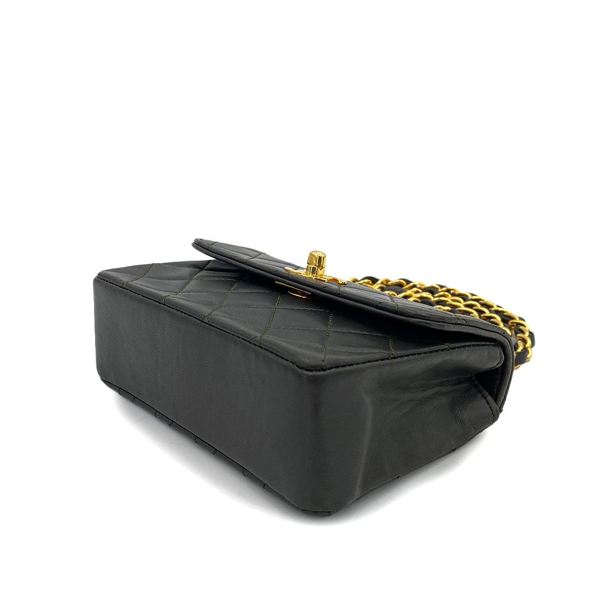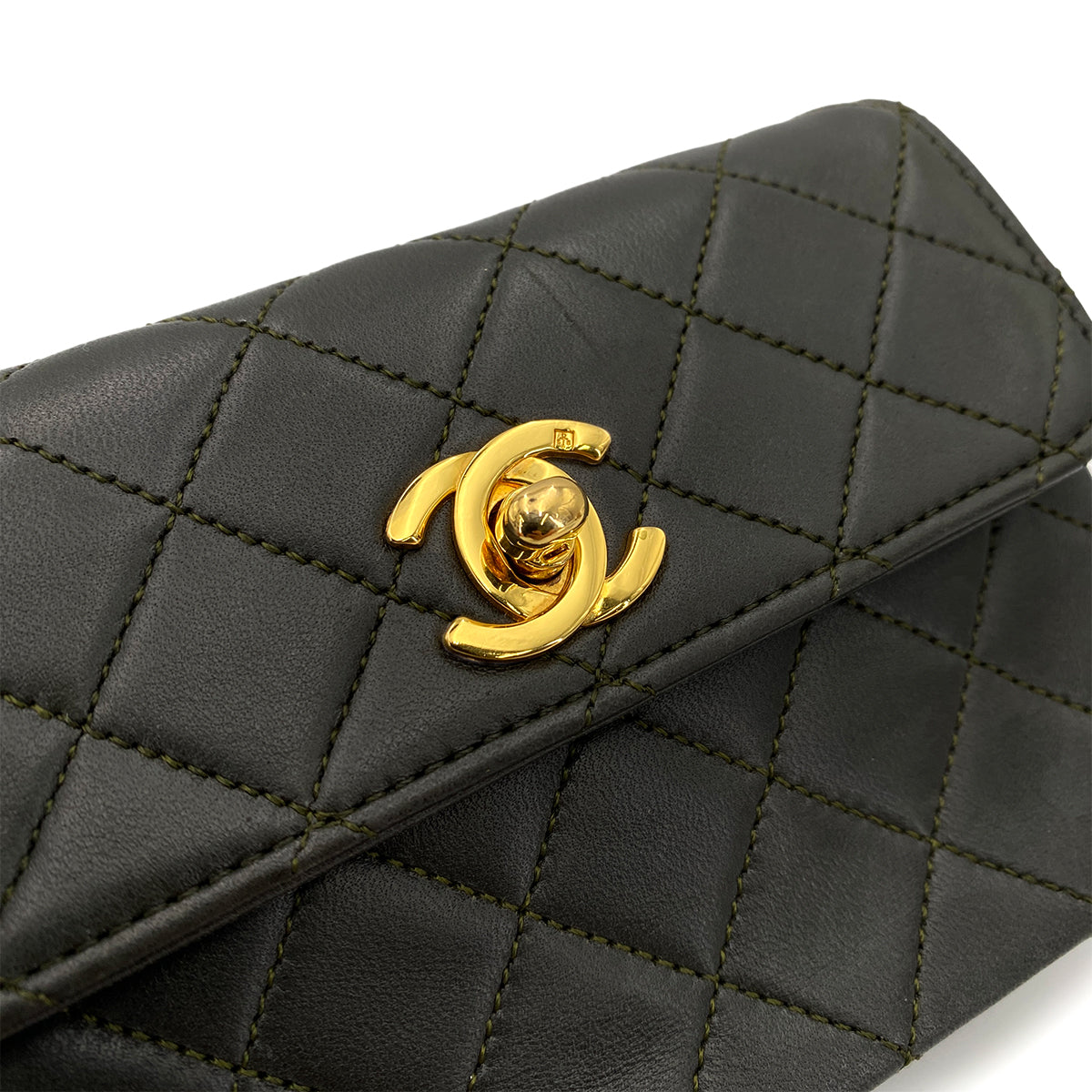 CHANEL VINTAGE MINI MATELASSE CHAIN SHOULDER BAG DARK GRAY LAMB SKIN 90248136