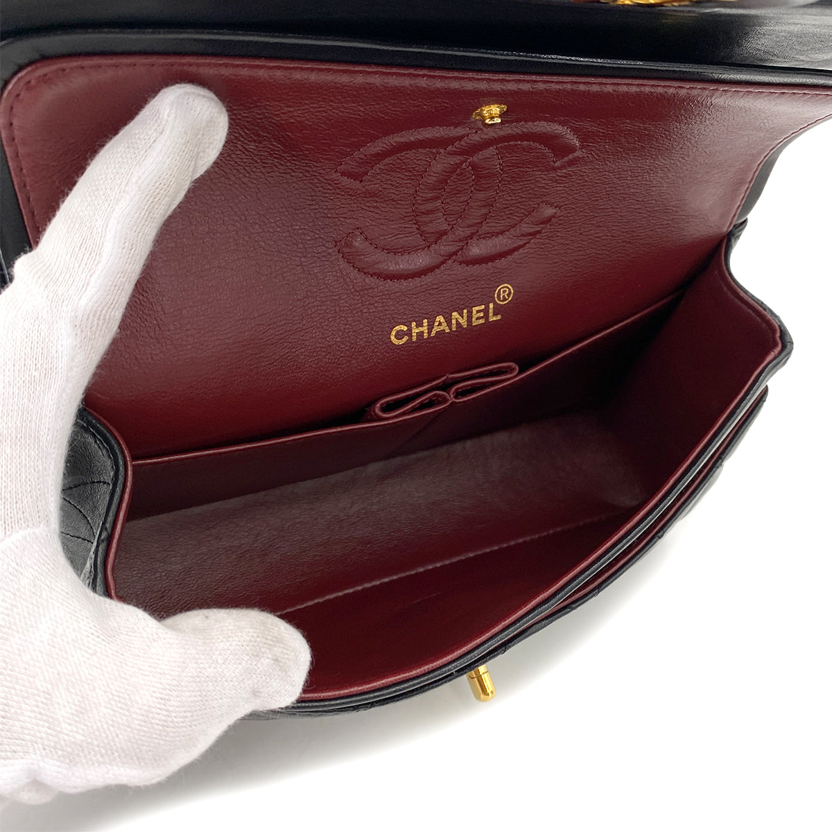 CHANEL VINTAGE CLASSIC FLAP SMALL CHAIN SHOULDER BAG BLACK LAMB SKIN 90248137