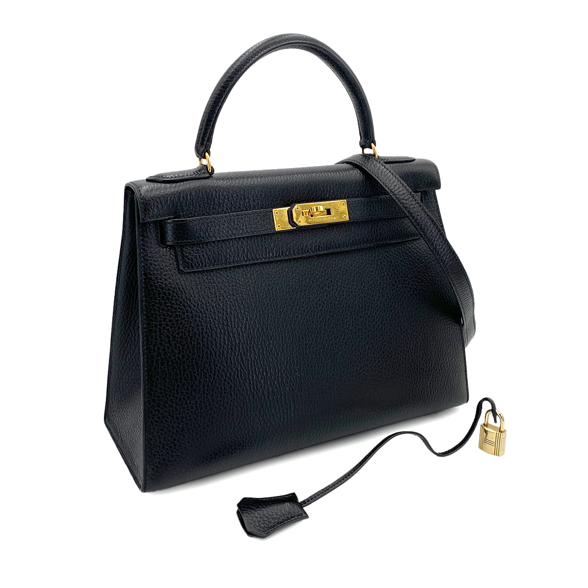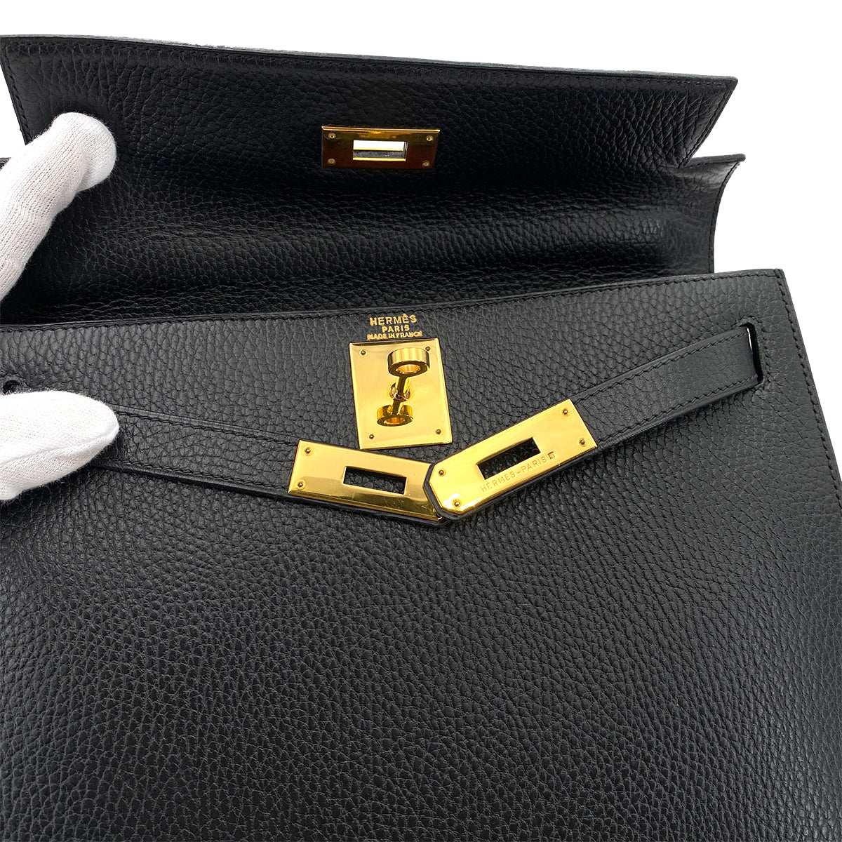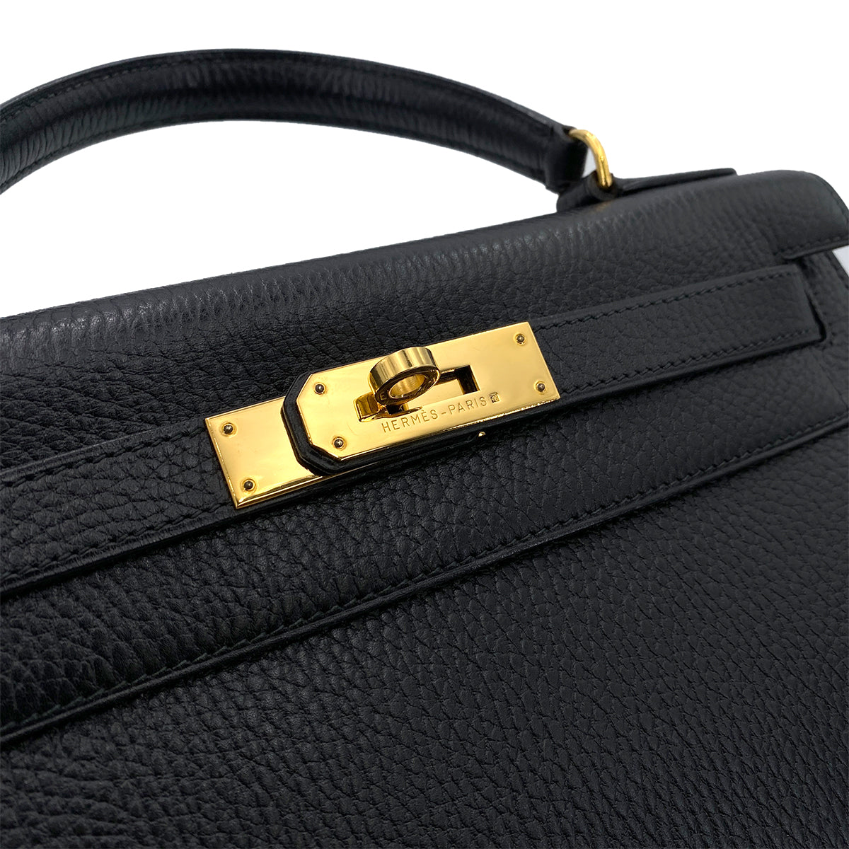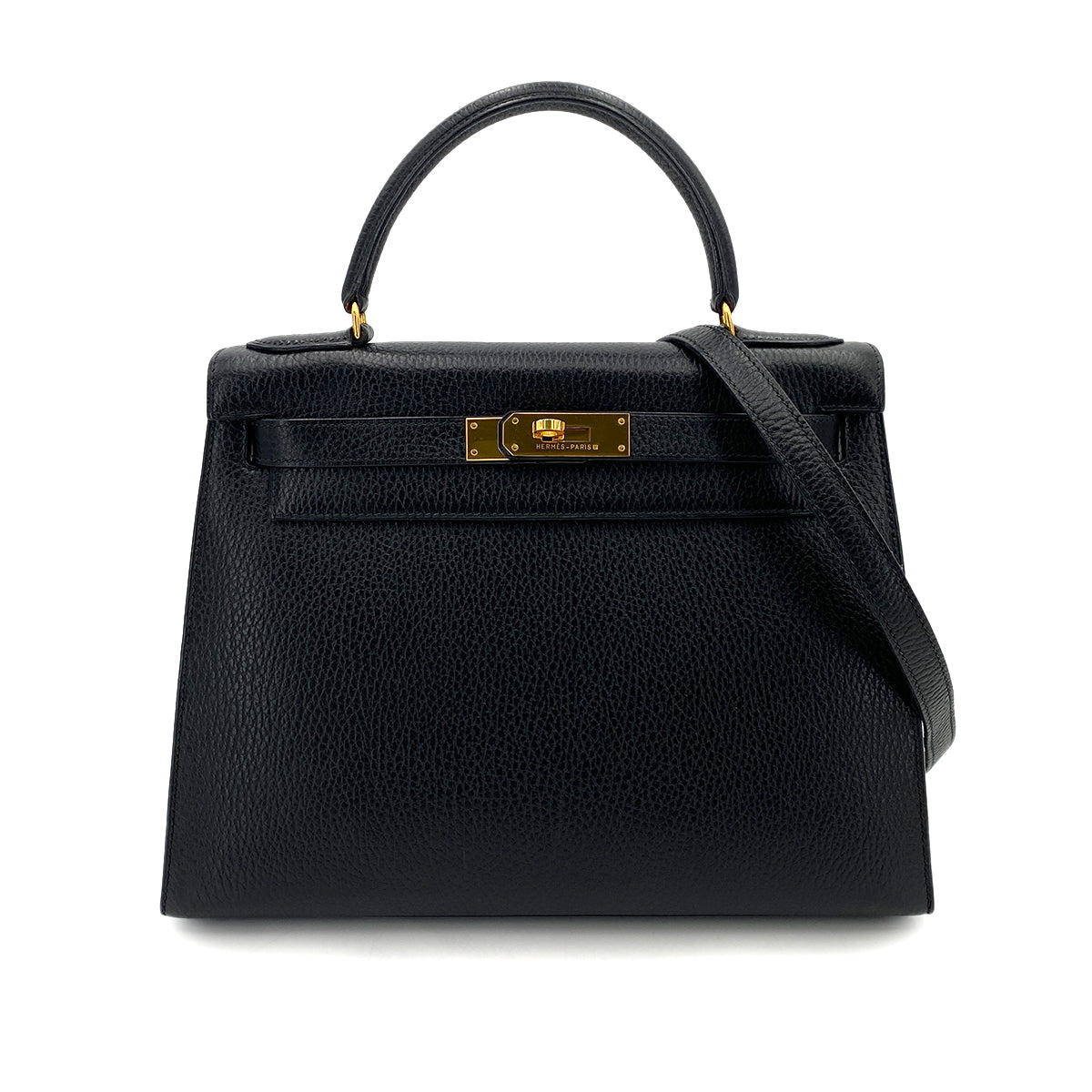 HERMES KELLY 28 SELLIER BLACK ARDENNES HAND SHOULDER BAG V 90248809