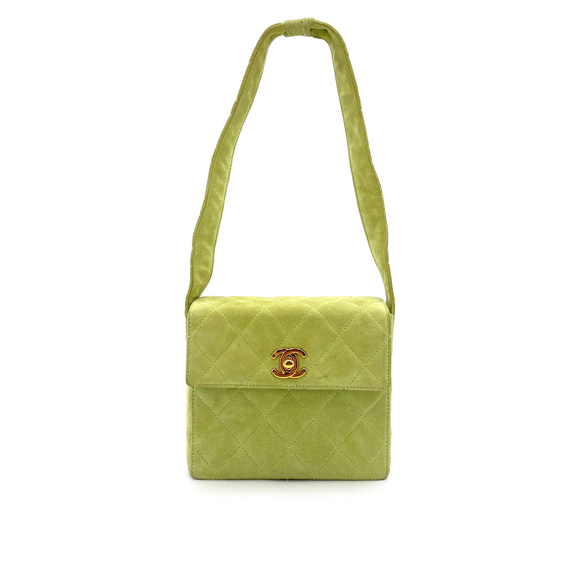 CHANEL VINTAGE MATELASSE SHOULDER BAG GREEN SUEDE 90248810