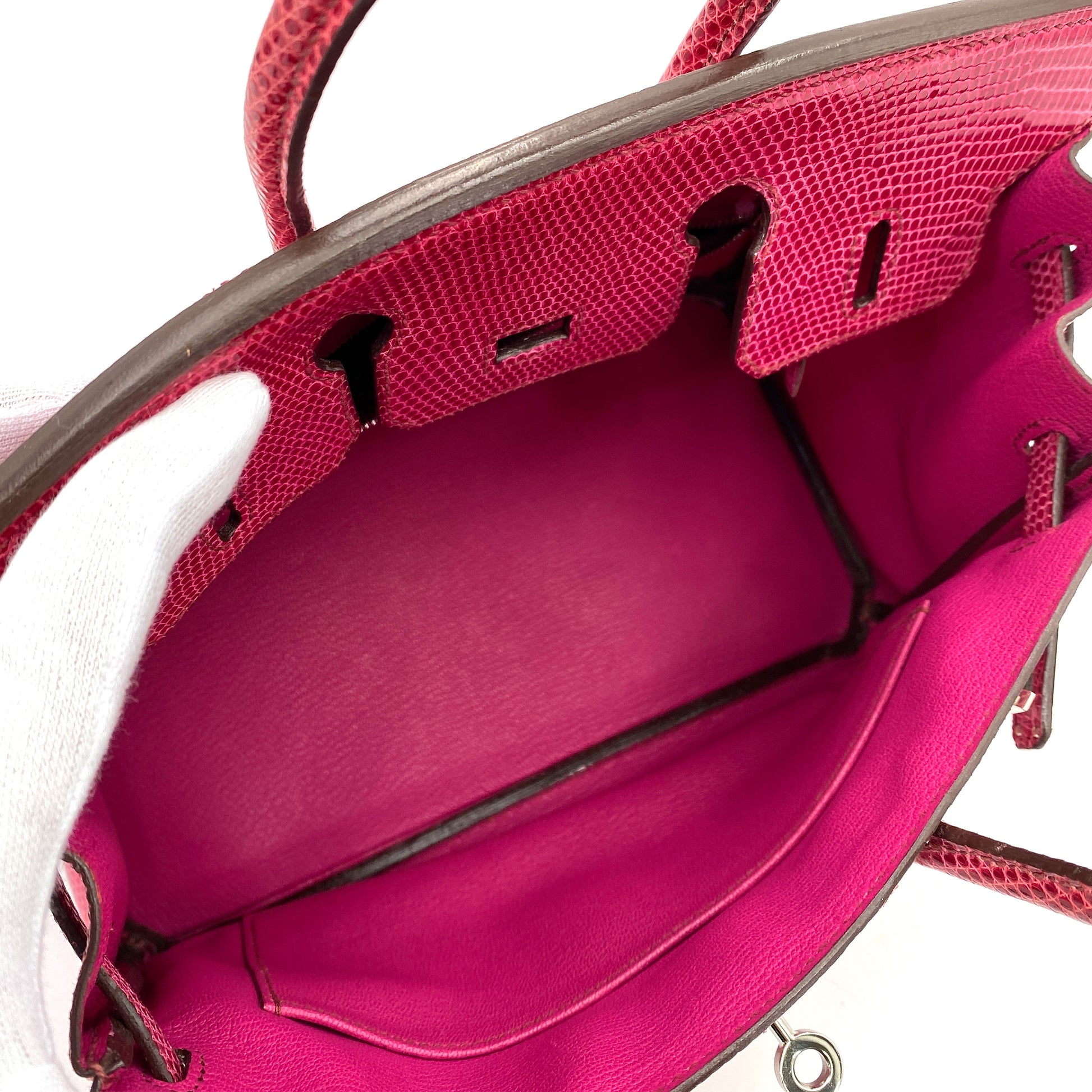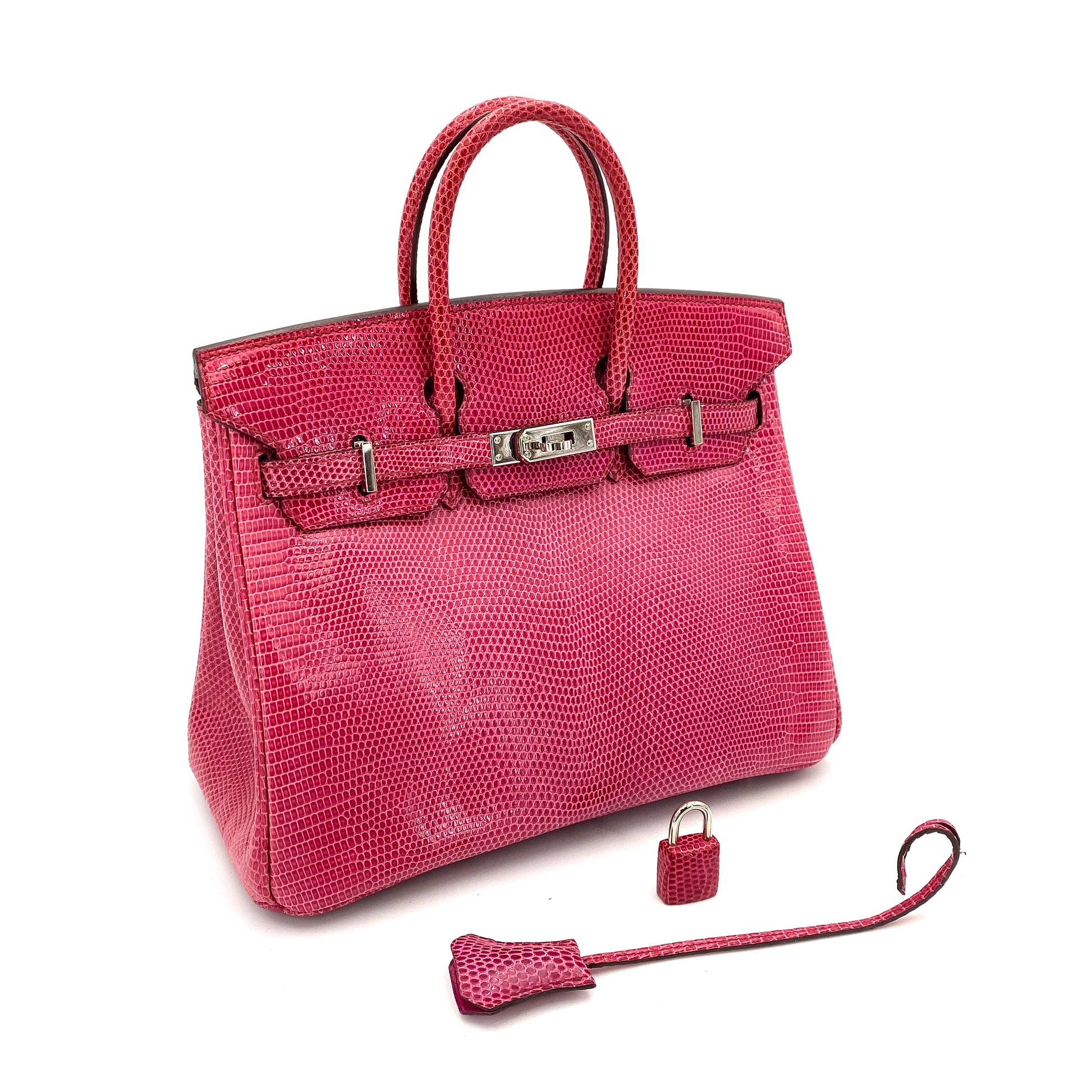 HERMES BIRKIN 25 FUSCHIA PINK LIZARD HAND BAG □L SHW 90248833