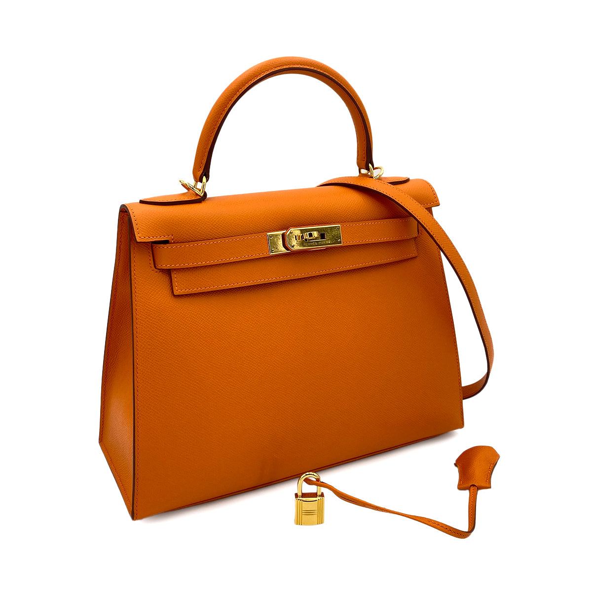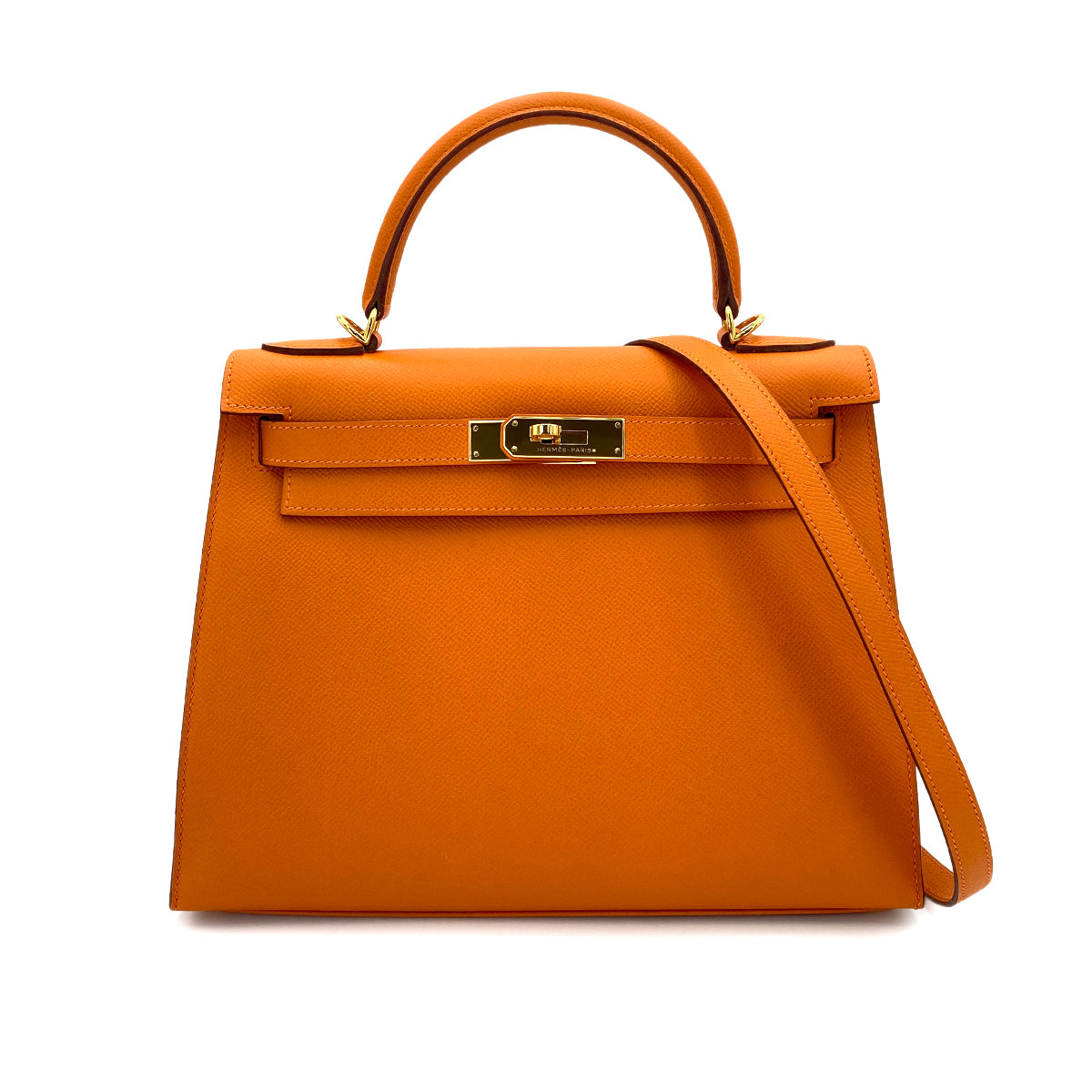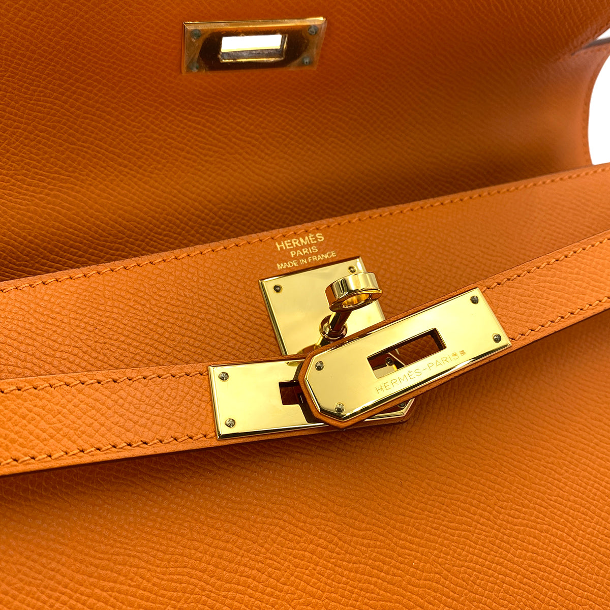 HERMES KELLY 28 SELLIER ORANGE EPSOM HAND SHOULDER BAG □M 90249019