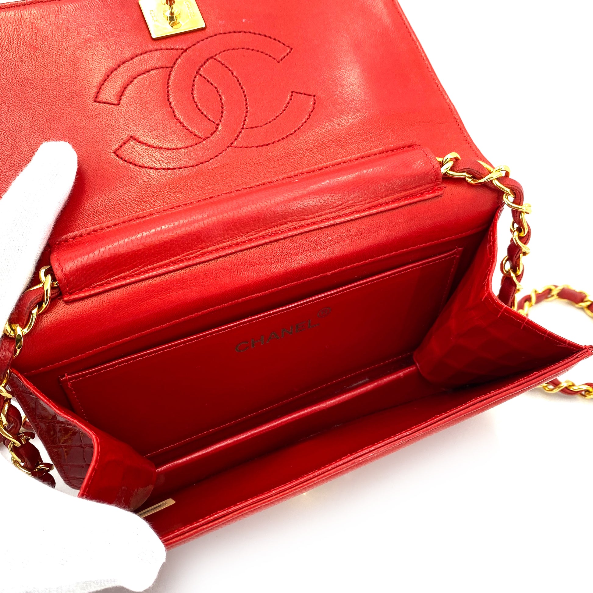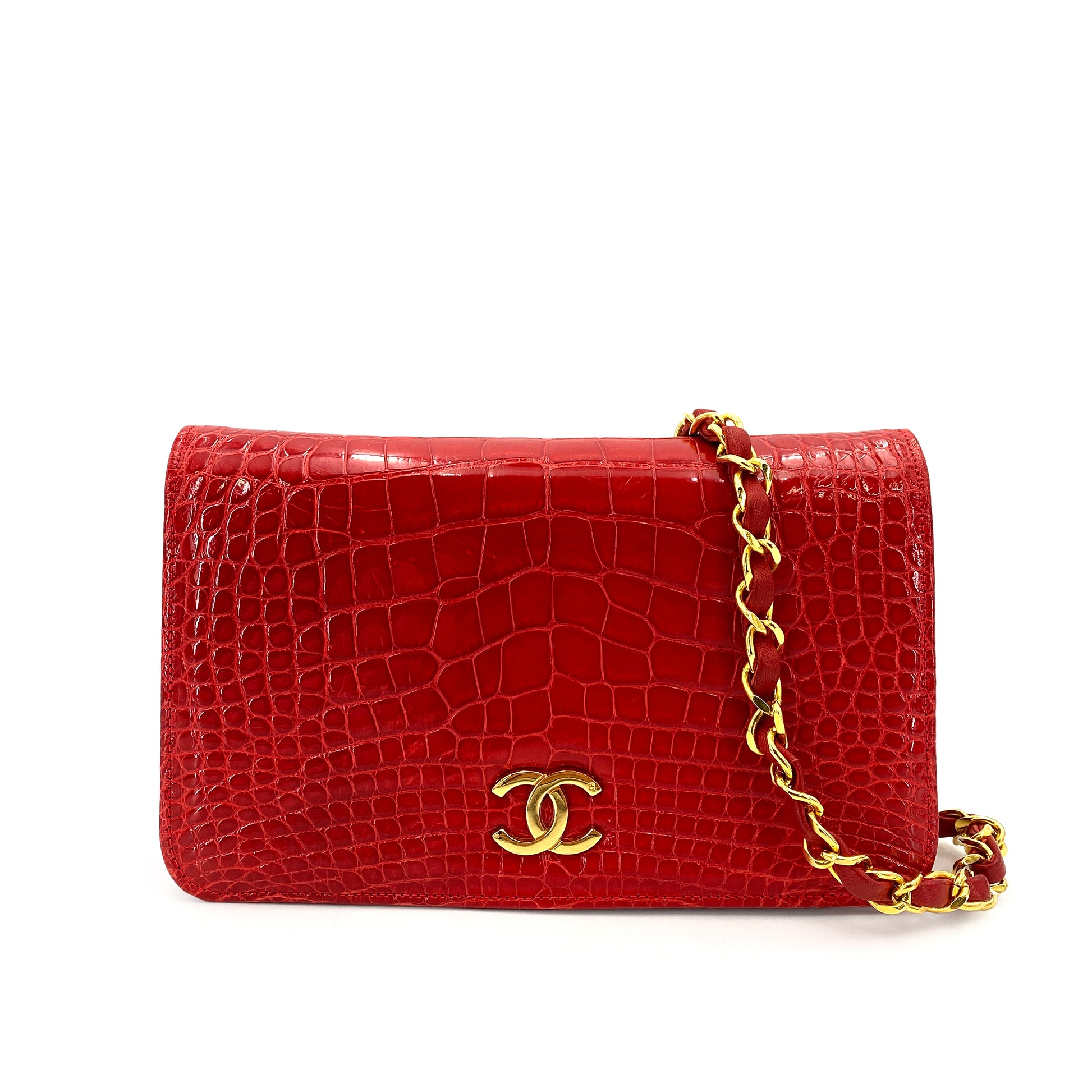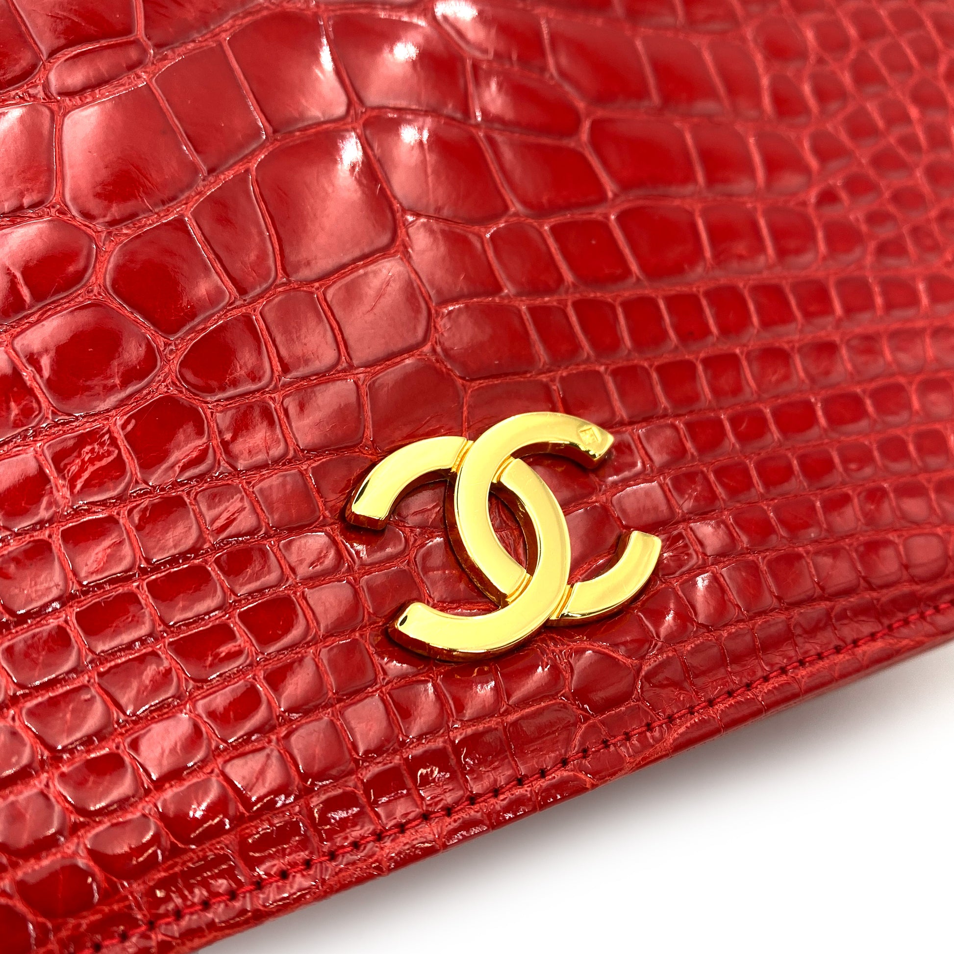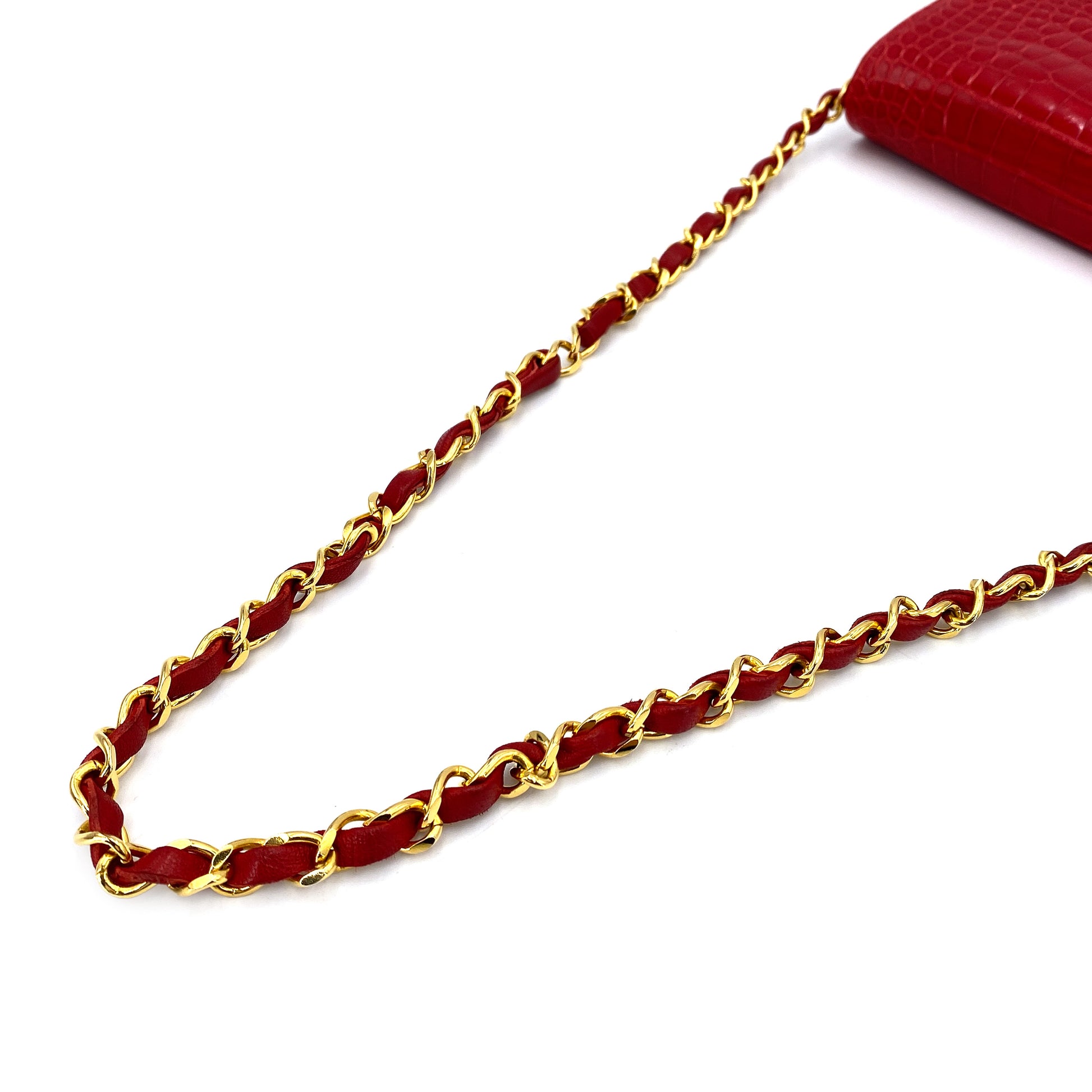 CHANEL VINTAGE FULL FLAP CHAIN SHOULDER BAG PUSH LOCK RED CROCODILE 90249034