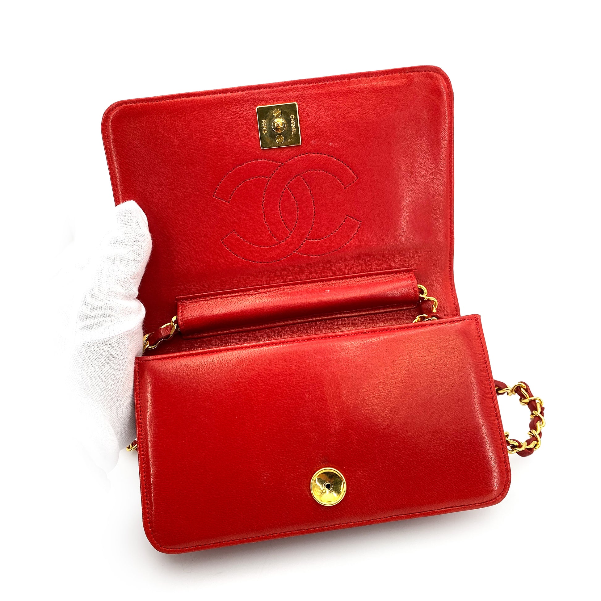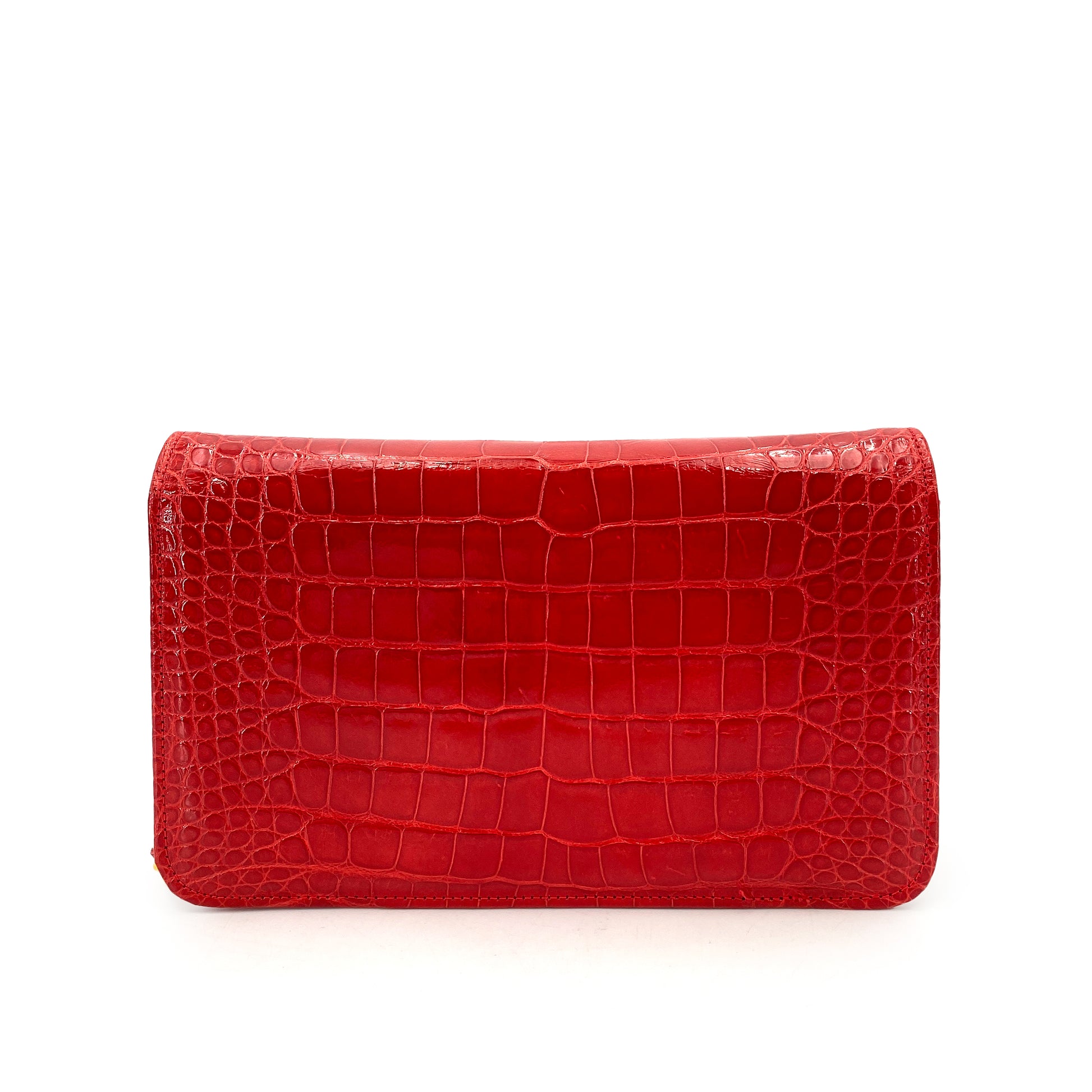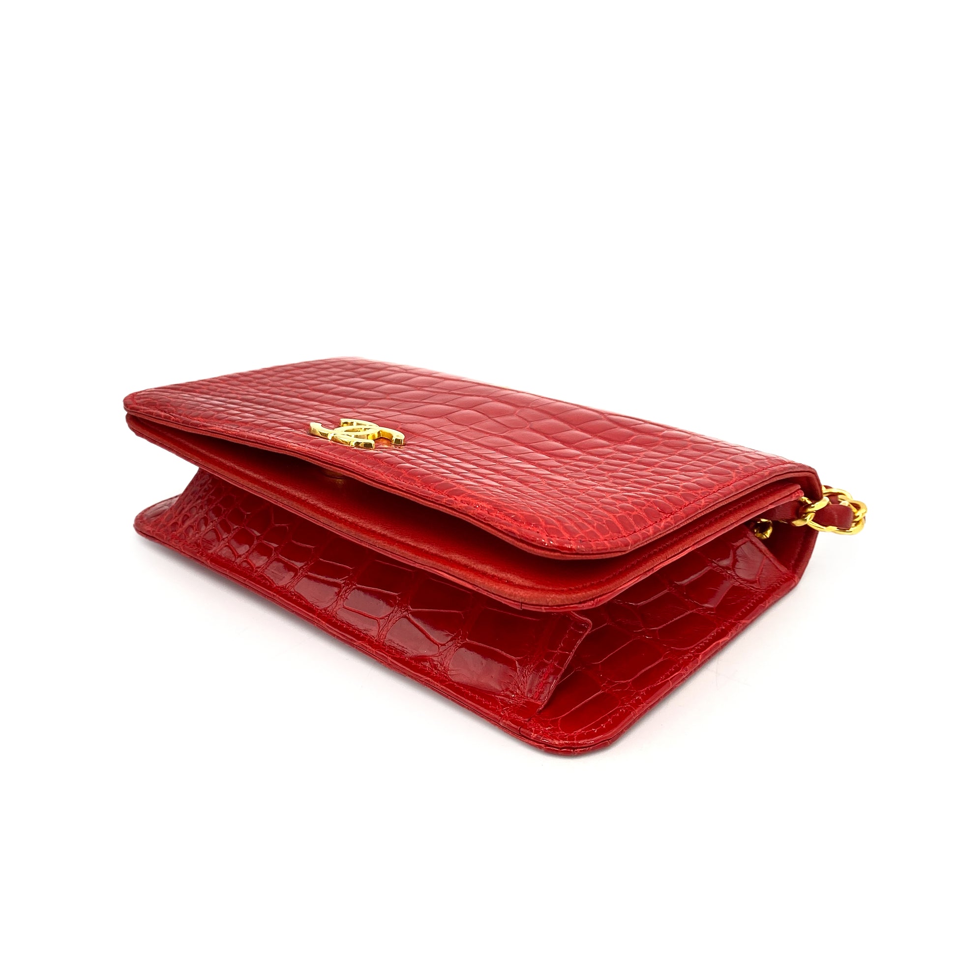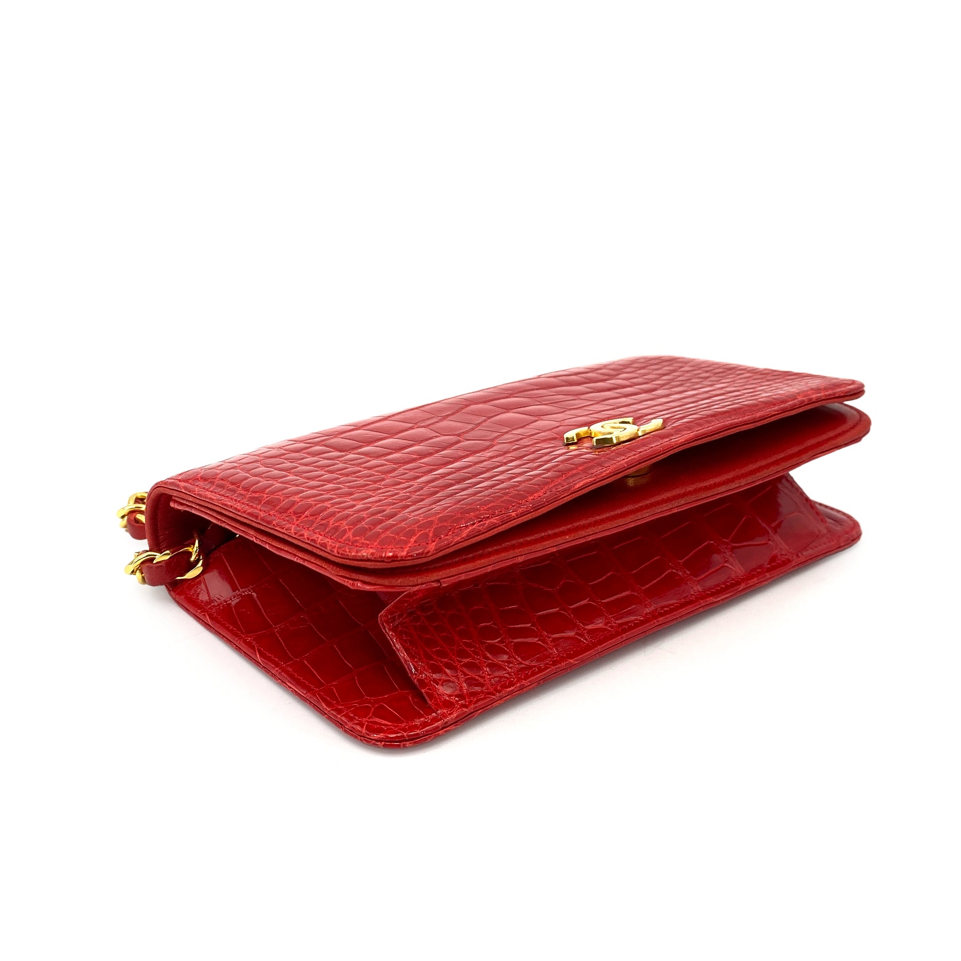 CHANEL VINTAGE FULL FLAP CHAIN SHOULDER BAG PUSH LOCK RED CROCODILE 90249034