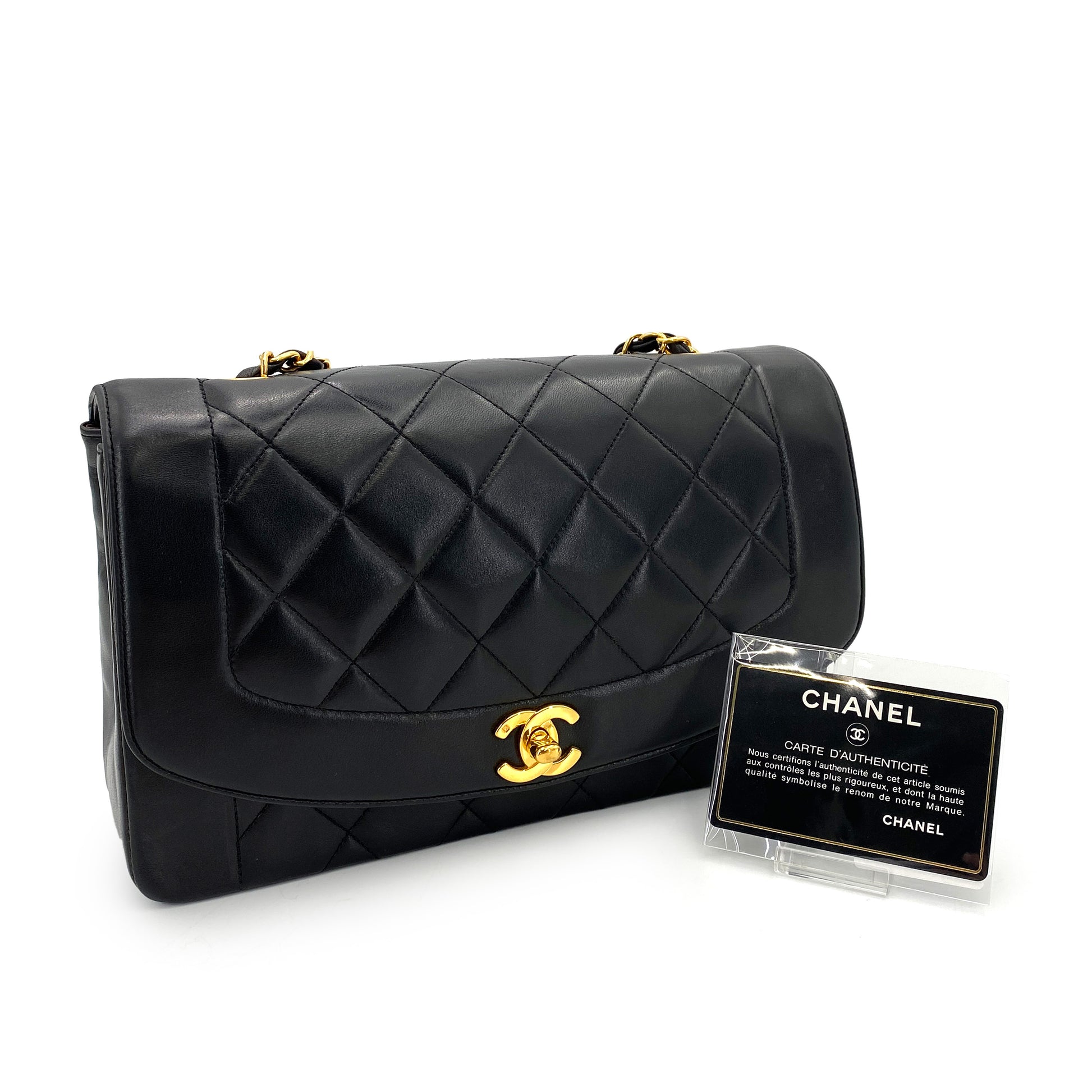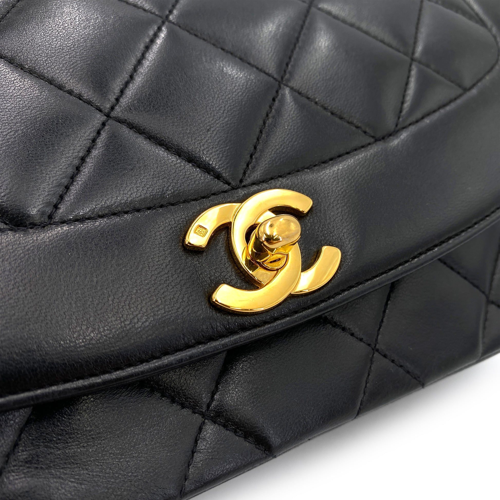 CHANEL VINTAGE DIANA MEDIUM CHAIN SHOULDER BAG BLACK LAMB SKIN 90250073