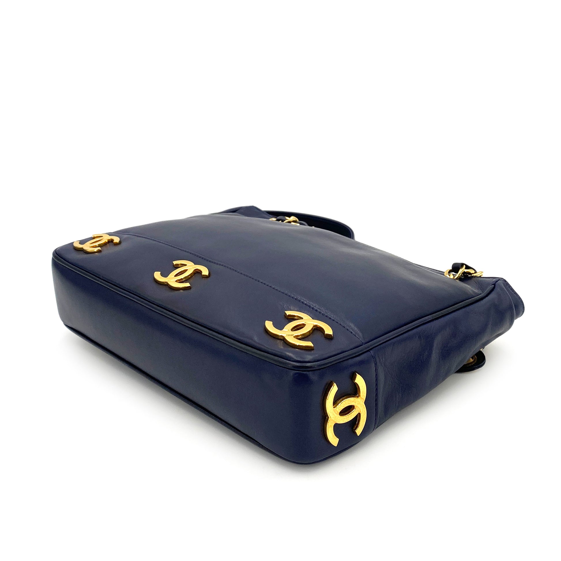 CHANEL VINTAGE TRIPLE COCO CHAIN TOTE BAG NAVY LAMB SKIN 90250083