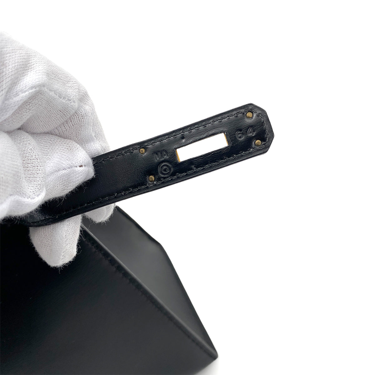 HERMES KELLY 28 SELLIER BLACK BOXCALF HAND SHOULDER BAG 〇Q 90251102