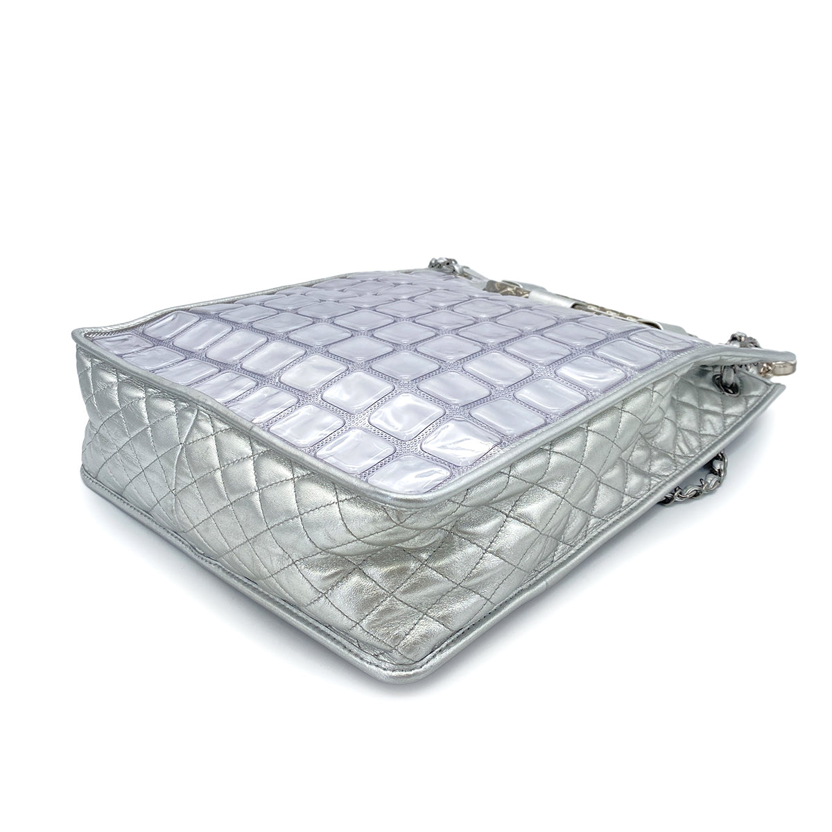CHANEL VINTAGE ICE CUBE CHAIN HAND SHOULDER BAG SILVER VINYL LEATHER 90252564