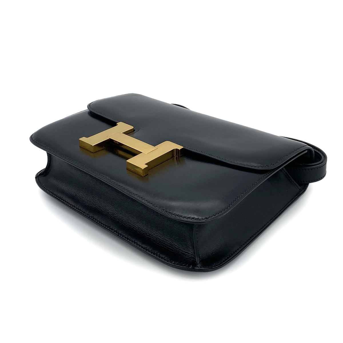 HERMES CONSTANCE BLACK BOXCALF SHOULDER BAG 〇J GHW 90253893