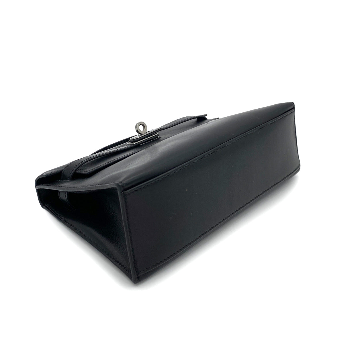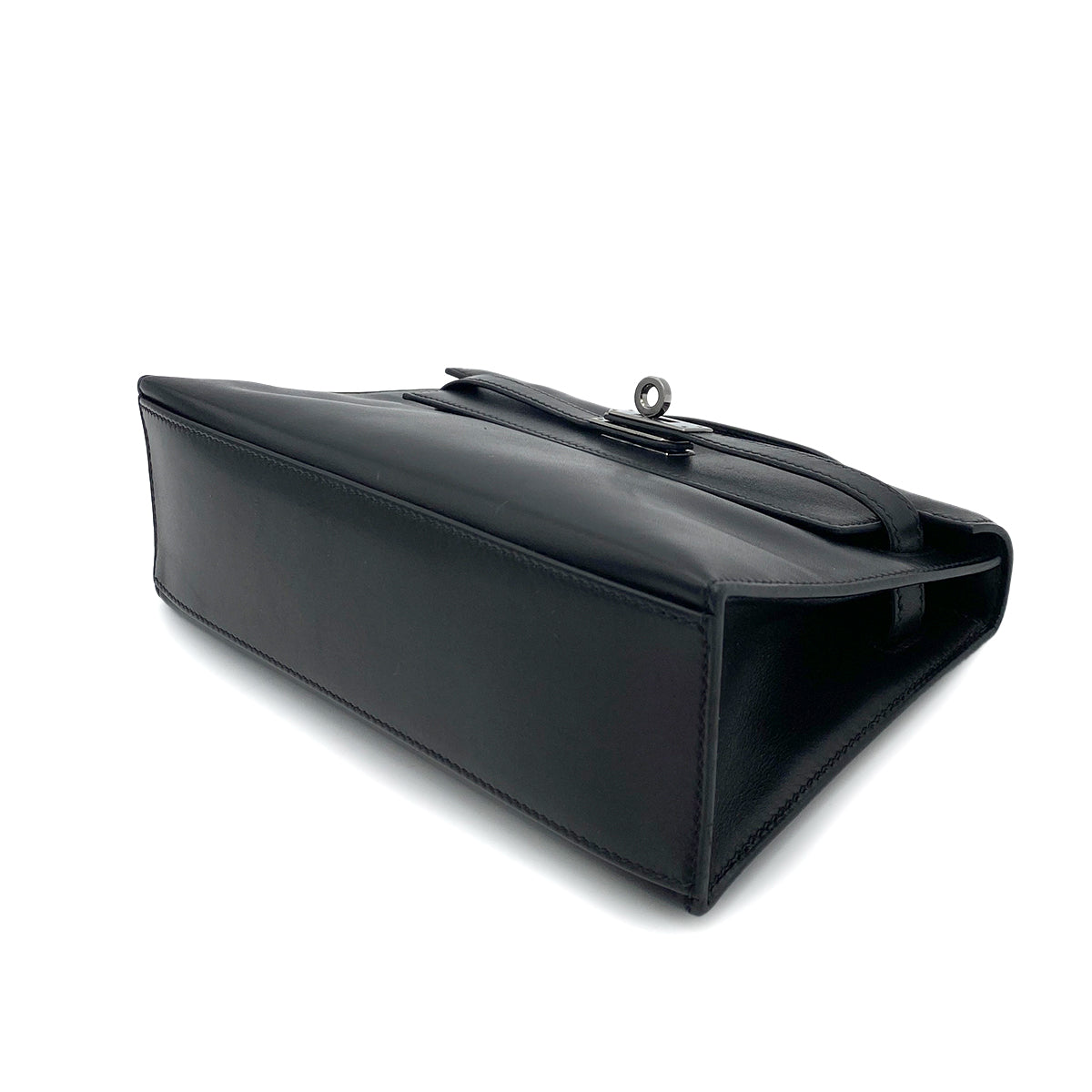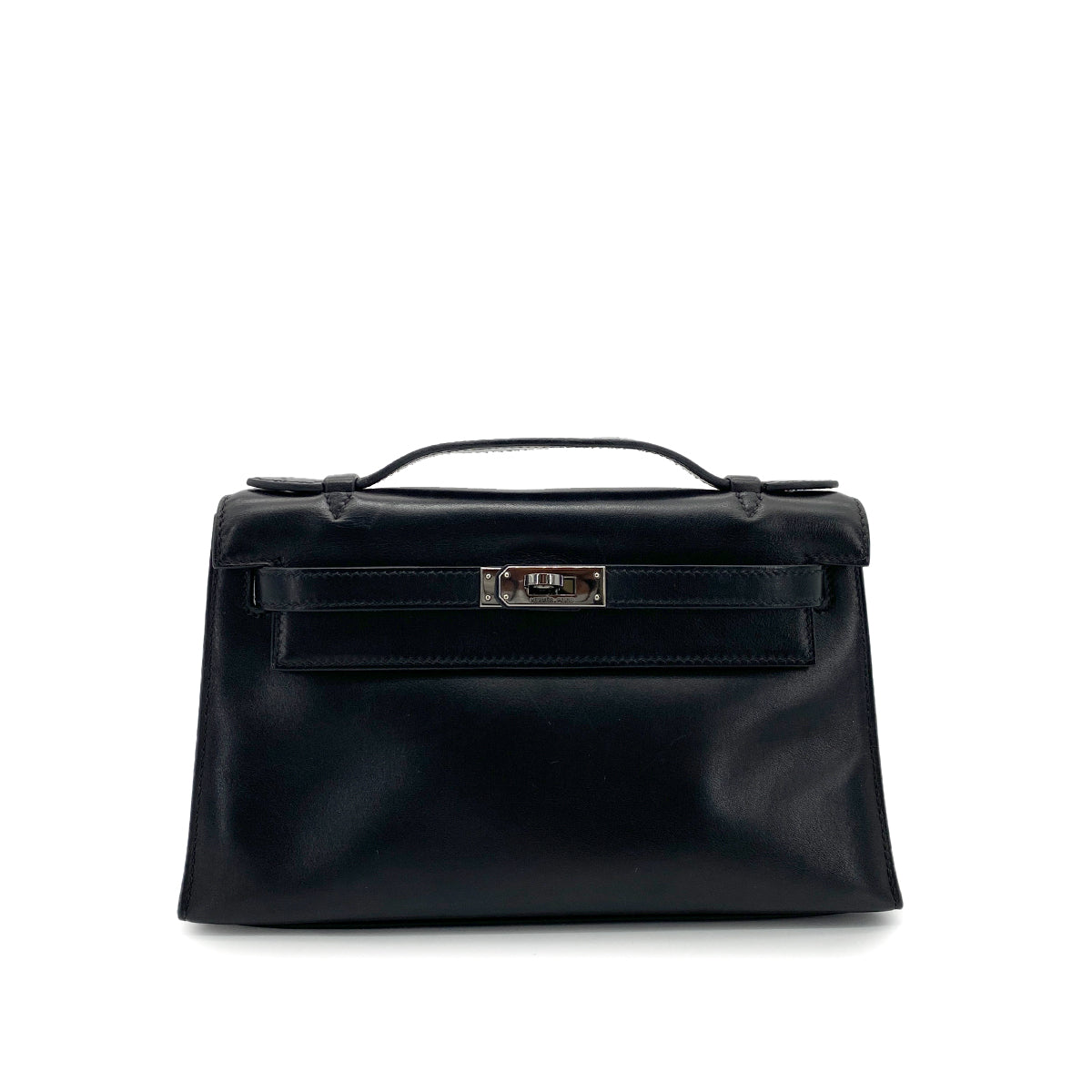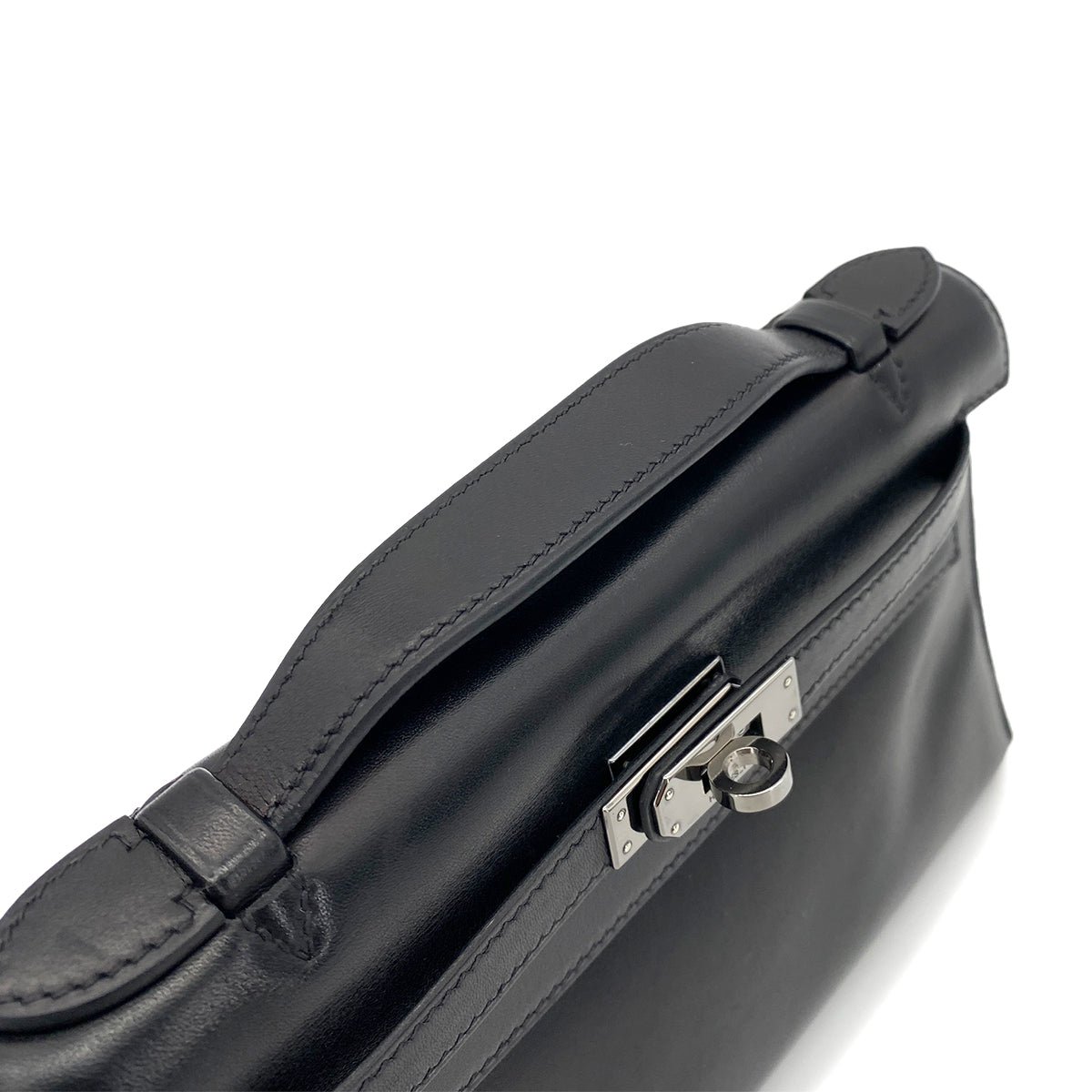 HERMES POCHETTE KELLY SELLIER BLACK SWIFT HAND BAG □H 90254617