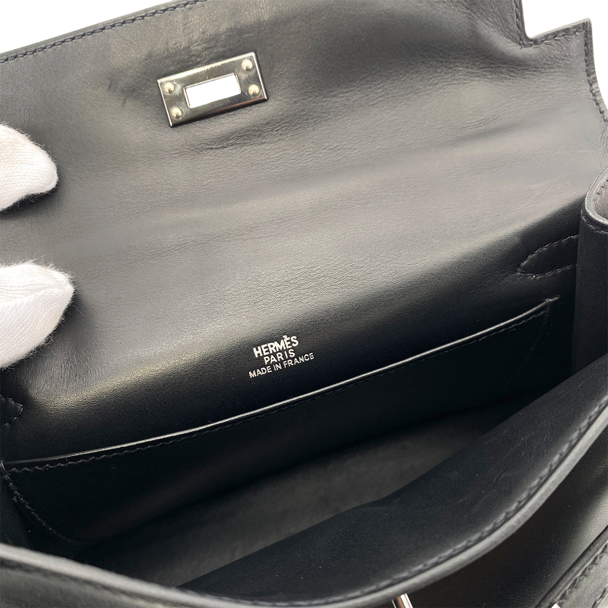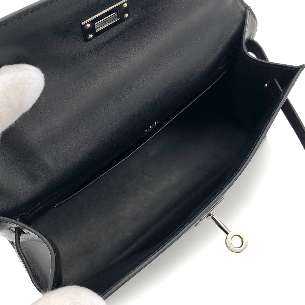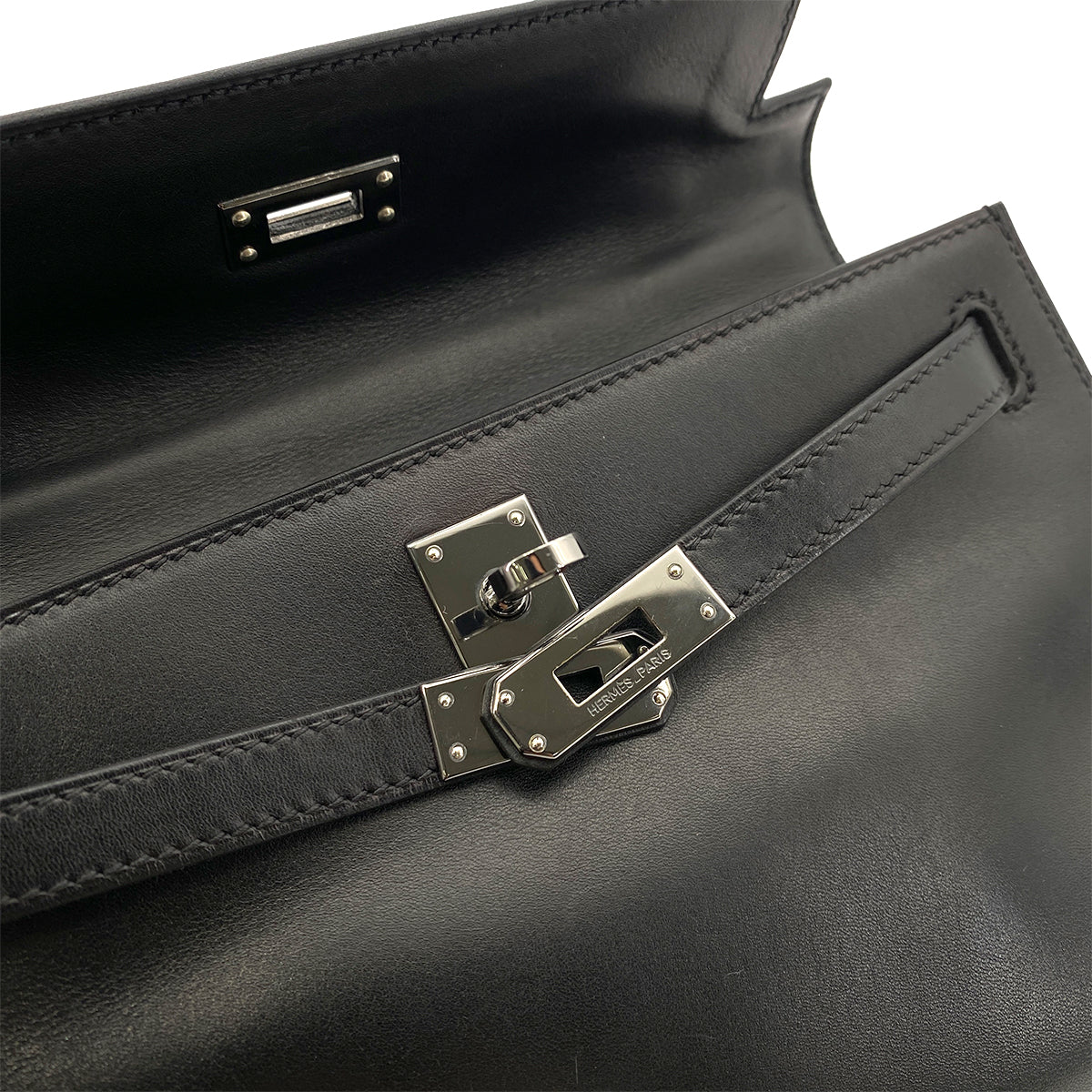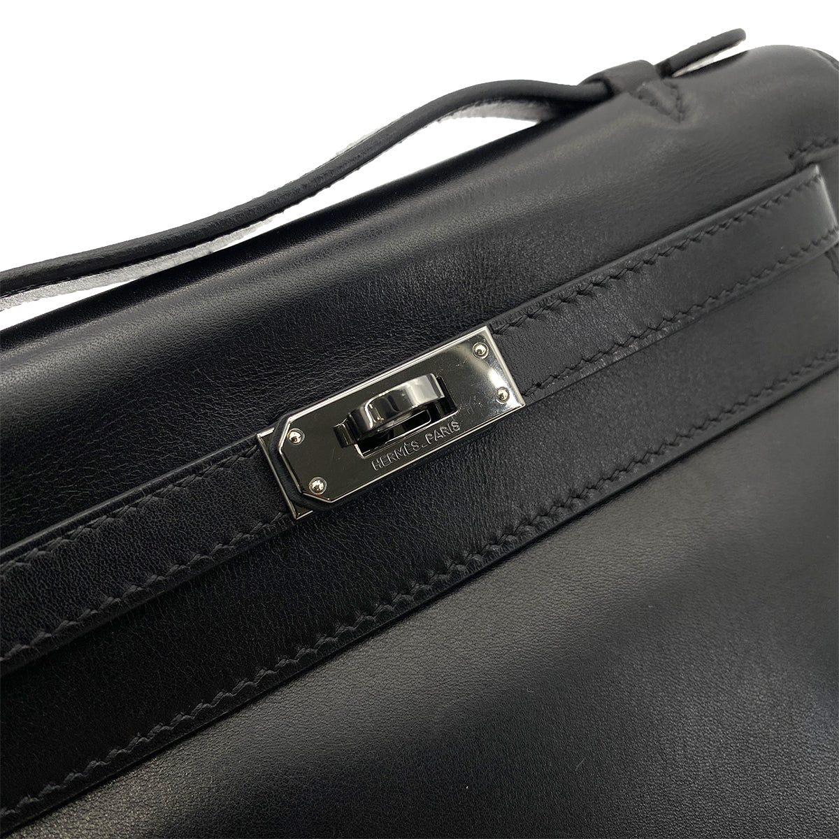 HERMES POCHETTE KELLY SELLIER BLACK SWIFT HAND BAG □H 90254617