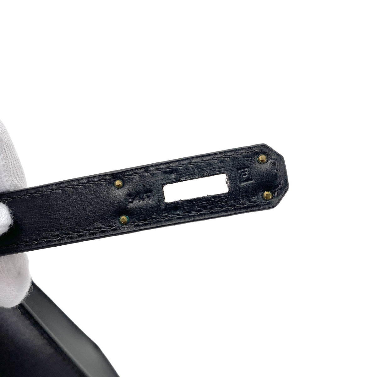 HERMES KELLY 32 SELLIER BLACK BOX CALF HAND SHOULDER BAG □F GHW 90255711