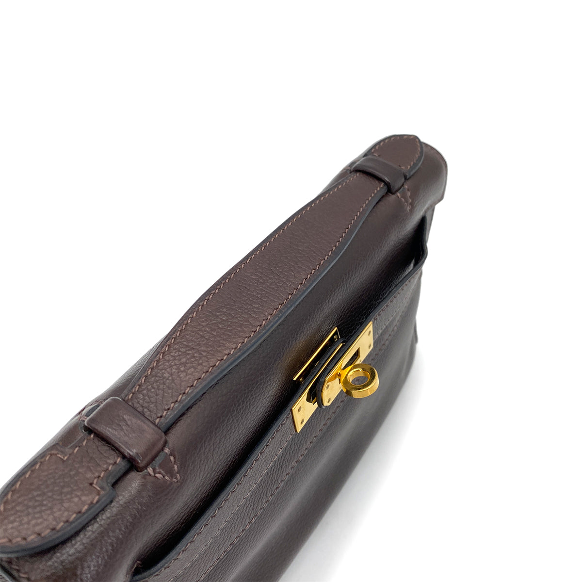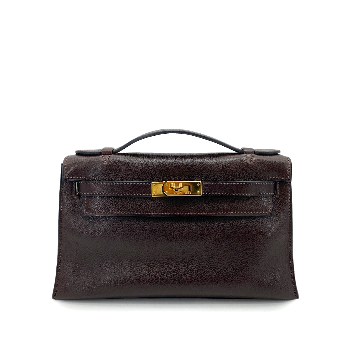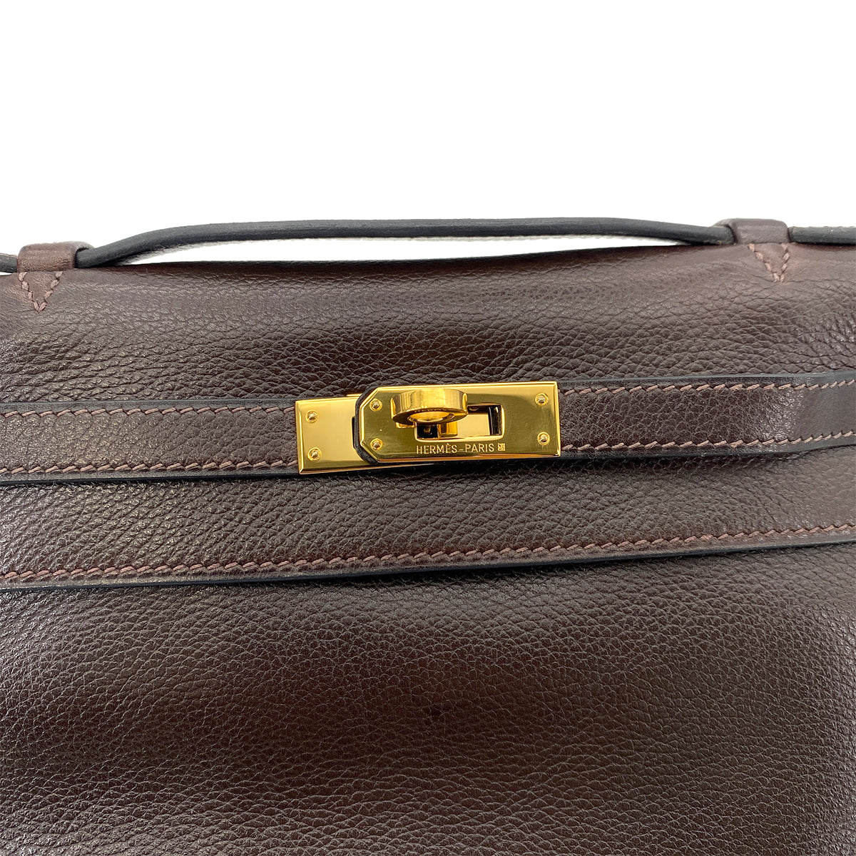 HERMES POCHETTE KELLY SELLIER BROWN TYPE EVER GRAIN HAND BAG □I GHW 90255913